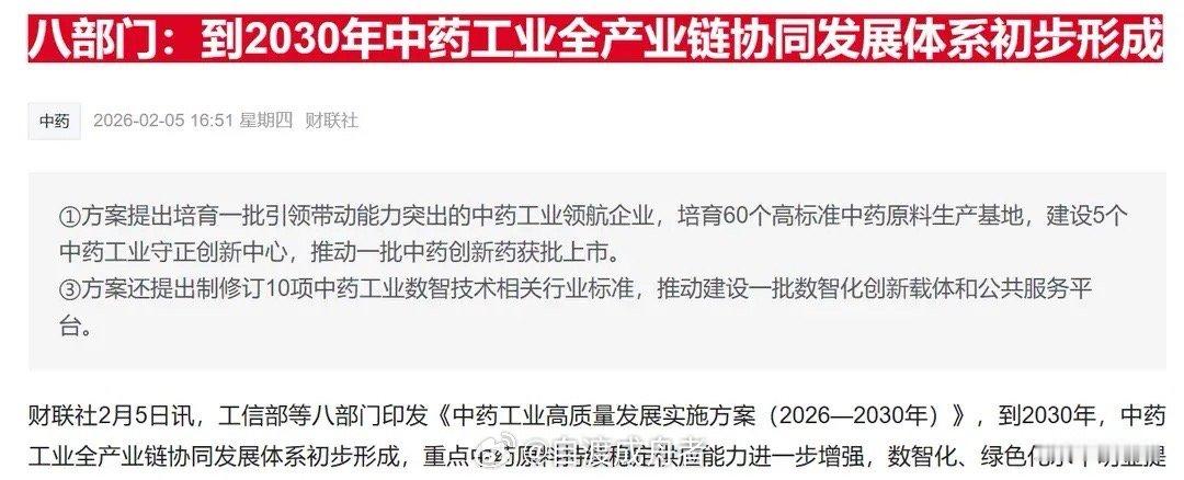 中药板块盘后迎来重磅利好!工信部等八部门联合印发《中药工业高质量发展实施方案(2026—2030年)》,政策东风之下,中药龙头企业有望率先受益。今天就来聚焦牛散刘少鸾与北向资金共同重仓的6家标的,它们均兼具低估值与高净利特质,具体来看: