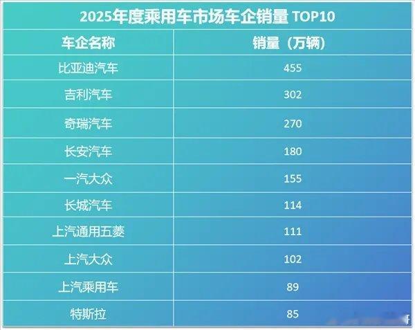 第一,销量是“明牌”。比亚迪455万辆断层第一,是第二名的1.5倍。前十名里,自主品牌占了七席,把合资巨头们压在了后半区。市场已经变天了。