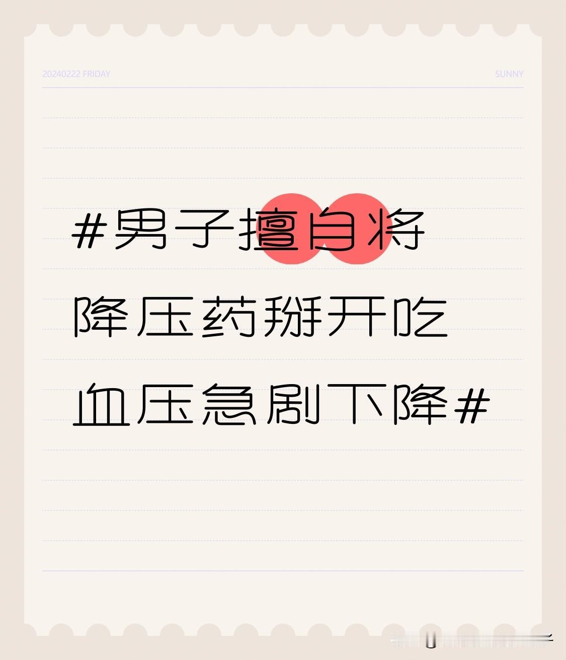 男子擅自将降压药掰开吃血压急剧下降 最近有个新闻,一男子为减少用药剂量,把降压药掰开吃,结果30分钟内血压急剧下降到测不出,当场昏迷,送医才脱离危险。他吃的是降压控释片,这种药能24小时匀速释放药物成分来精准控压。一旦掰开,控释结构破坏,药物短时间大量释放,血压就会“断崖式”下降,严重时会致命。 其实很多常用药,像缓释、控释、肠溶药物,都得整片吞服。特别是降压、降糖药,更要精准控量。家长也别随意把成人药掰开给孩子吃。吃药得按说明书或医嘱来,要是吃了药不舒服,赶紧停药就医。