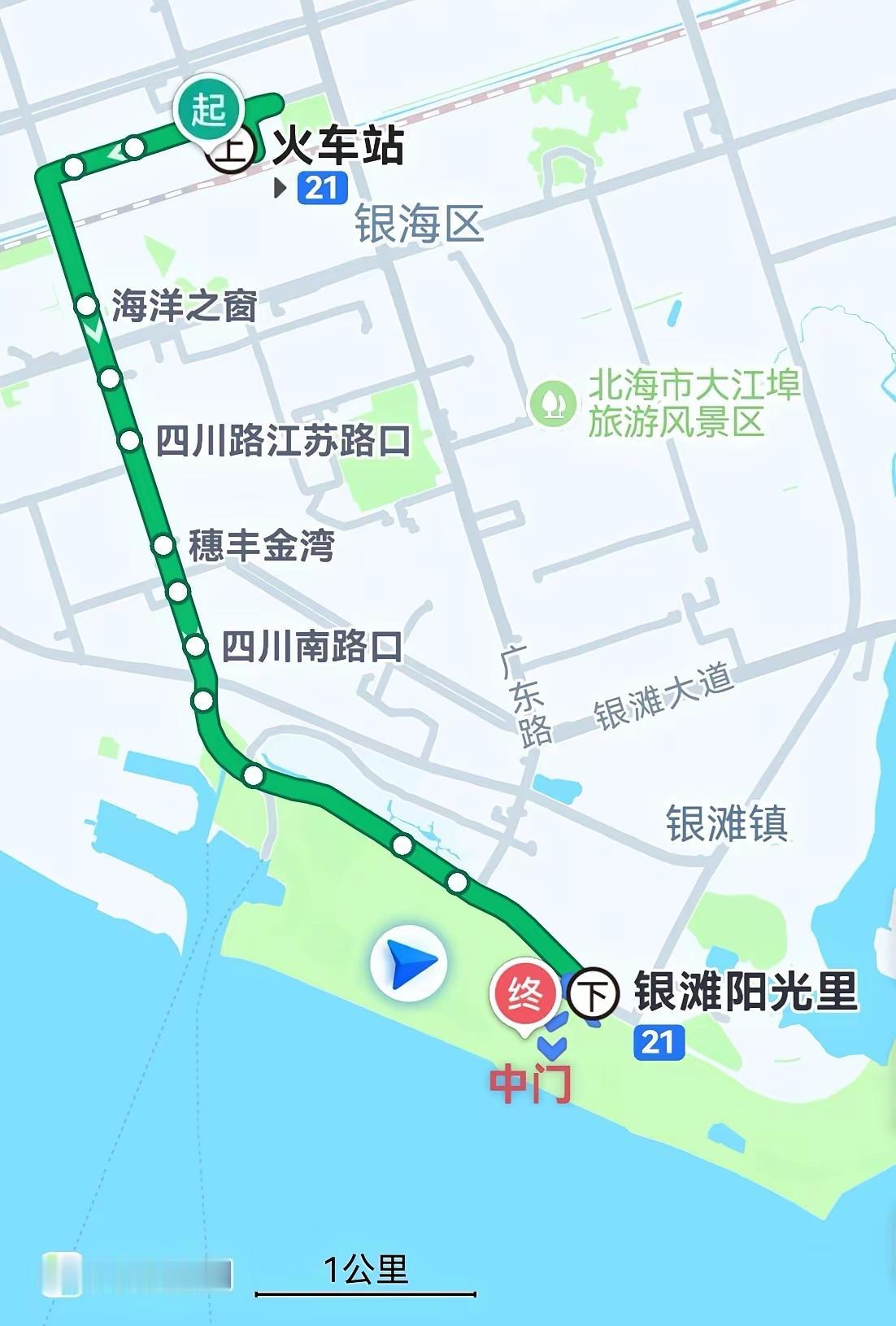 今天看了网友的北海游记才知道,原来北海银滩有三个门,我们只知道两个,这位网友发的图,下面的图识导航一目了然,公交车也很方便,几路车也都标识了,感谢这位网友!
