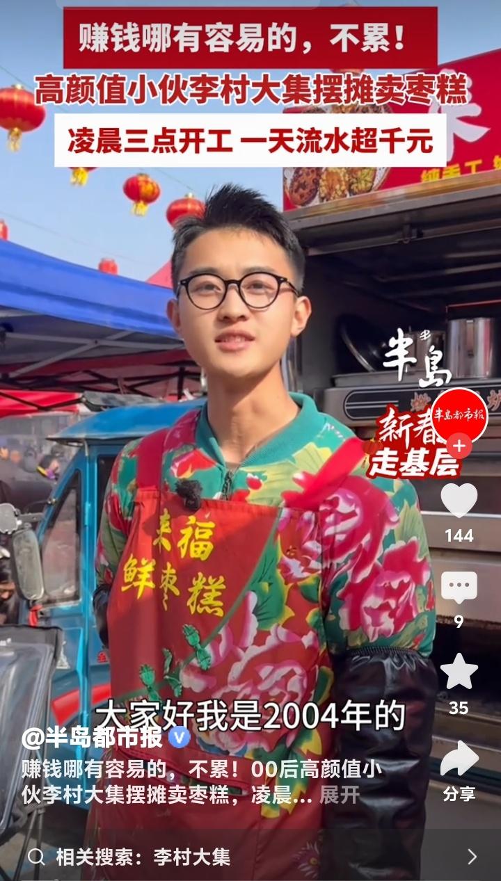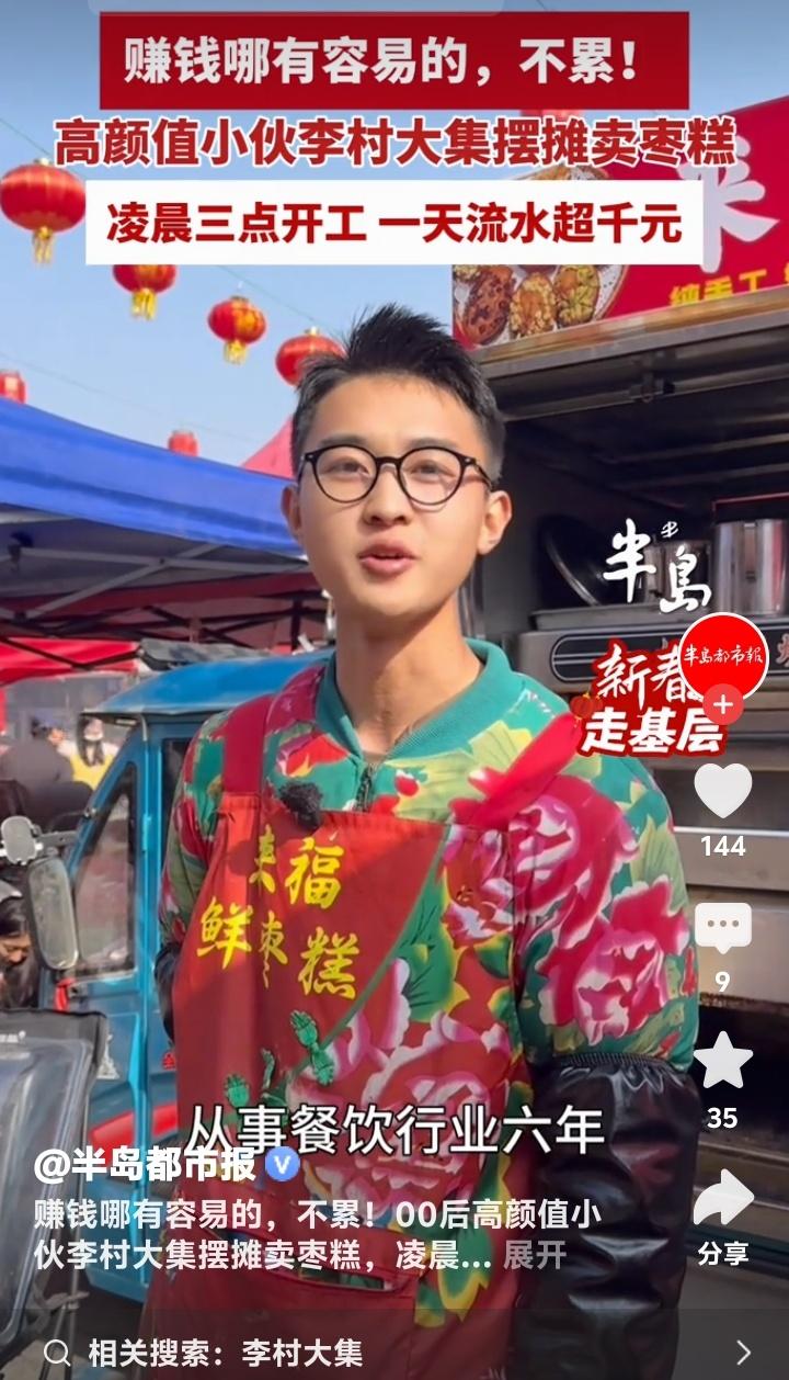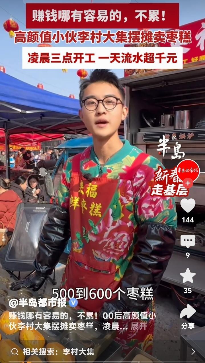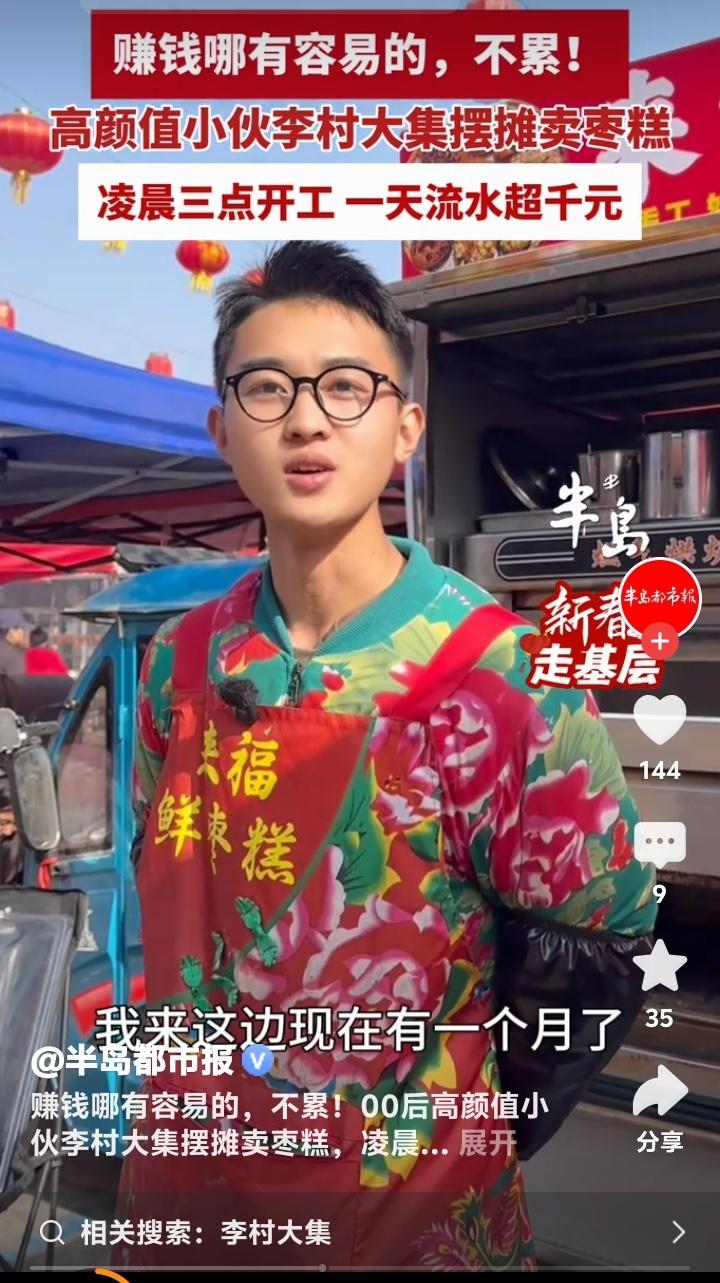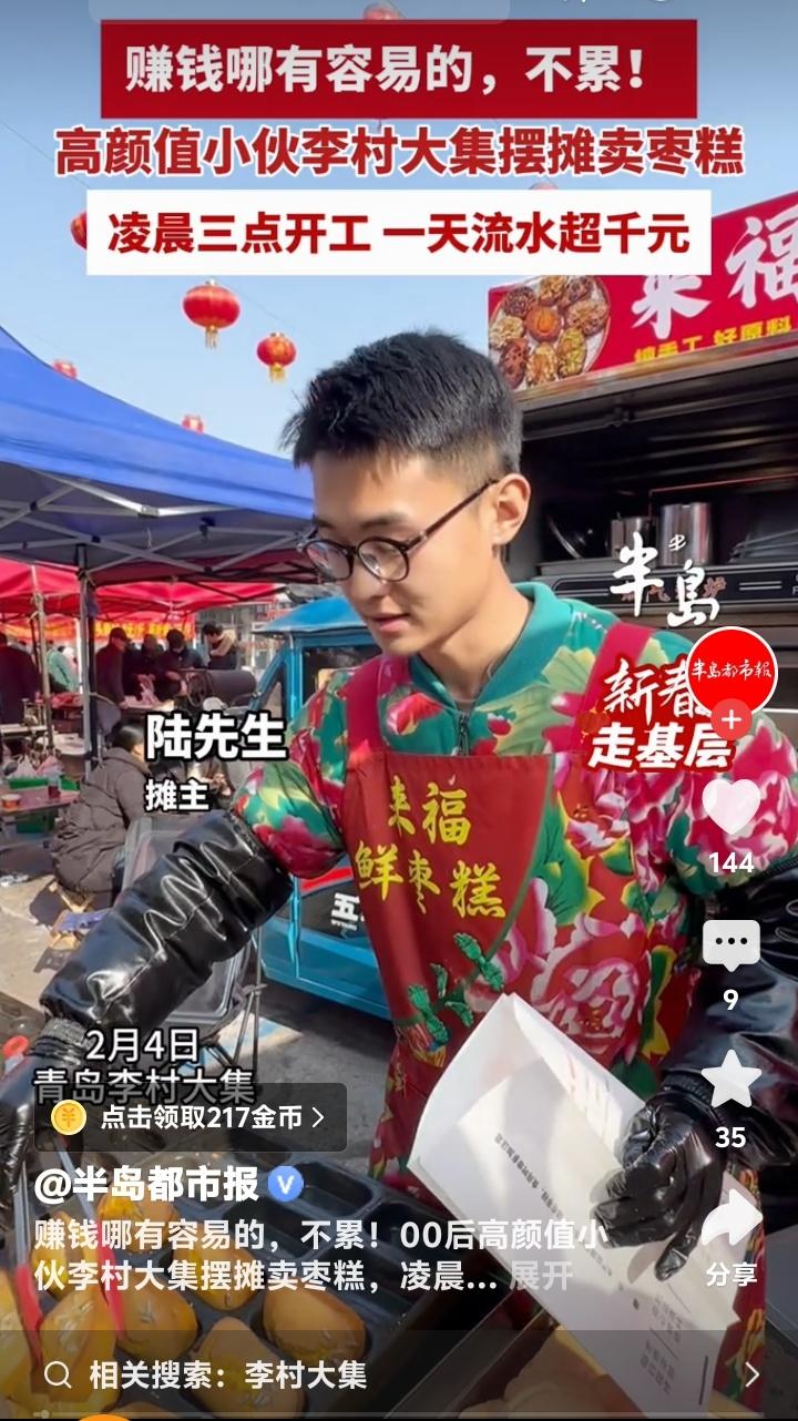 凌晨三点青岛李村大集飘香!00后高颜值小伙拒当打工人,靠一手枣糕日销千元逆袭人生 当大多数同龄人还在为早八通勤焦虑时,青岛李村大集的星光下,一个年轻的身影早已点亮炉火。新鲜枣糕的甜香混着晨雾弥漫开来,这不仅是食物的味道,更是一个00后青年对生活发起的炽热宣言。他选择挣脱格子间的束缚,用双手和汗水,在烟火气中烤出自己的未来。 凌晨三点钟的城市寂静无声,而他的战场已然苏醒。面粉、鸡蛋、红枣泥在手中融合,每一个步骤都凝结着深夜的坚守。炉火映亮他年轻却认真的脸庞,那不只是谋生的辛劳,更是将梦想揉进面团里的专注。这个世界从不缺少熬夜的人,但为了一份热气腾腾的事业而熬的夜,每一步都算数。 有人质疑这不过是歌颂苦难,但走近看才懂,这分明是在歌颂“选择”的力量。当躺平与内耗成为一些年轻人的口头禅,这位小伙用行动重新定义自由:真正的自由不是无所事事,而是有底气选择自己热爱的生活方式,并用尽全力把它经营得热气腾腾。 顾客们循着香味而来,等待新鲜出炉的枣糕。他们买走的不仅是一份点心,更是一份见证。见证着一个年轻人如何把“不愿被束缚”的念头,落地为凌晨三点的闹钟、反复调配的配方、和一句真诚的“谢谢光临”。每一笔扫码到账的声音,都是生活对他这份孤勇的回响。 日流水超千元的背后,是五百多个枣糕从手到心的传递。没有捷径,没有魔法,有的只是对原料的挑剔、对火候的执着、对每一个来过摊前的人的珍惜。这哪里只是卖糕点?这分明是在经营一份微小而牢固的尊严,是向世界证明:脚踏实地,星辰大海就在这方寸灶台之间。 他的故事像一面镜子,照见我们心底那份对“亲手创造”的渴望。我们为之动容,不仅仅因为他帅气的脸庞或可观的收入,更因为他活出了很多人不敢活的模样:果断、专注、把人生攥在自己手里。这份共鸣,跨越屏幕,击中了每一个曾在梦想与现实间徘徊的普通人。 所以,下次当你感到迷茫或疲惫时,或许可以想起李村大集的那缕枣糕香。它提醒我们,生活总有另一种可能——不需要等待救赎,自己就可以成为那团火,照亮一条路,也温暖一路人。每一个认真生活的普通人,都是自己生活的英雄。 (來源:半島都市報) 逆袭人生 00后创业