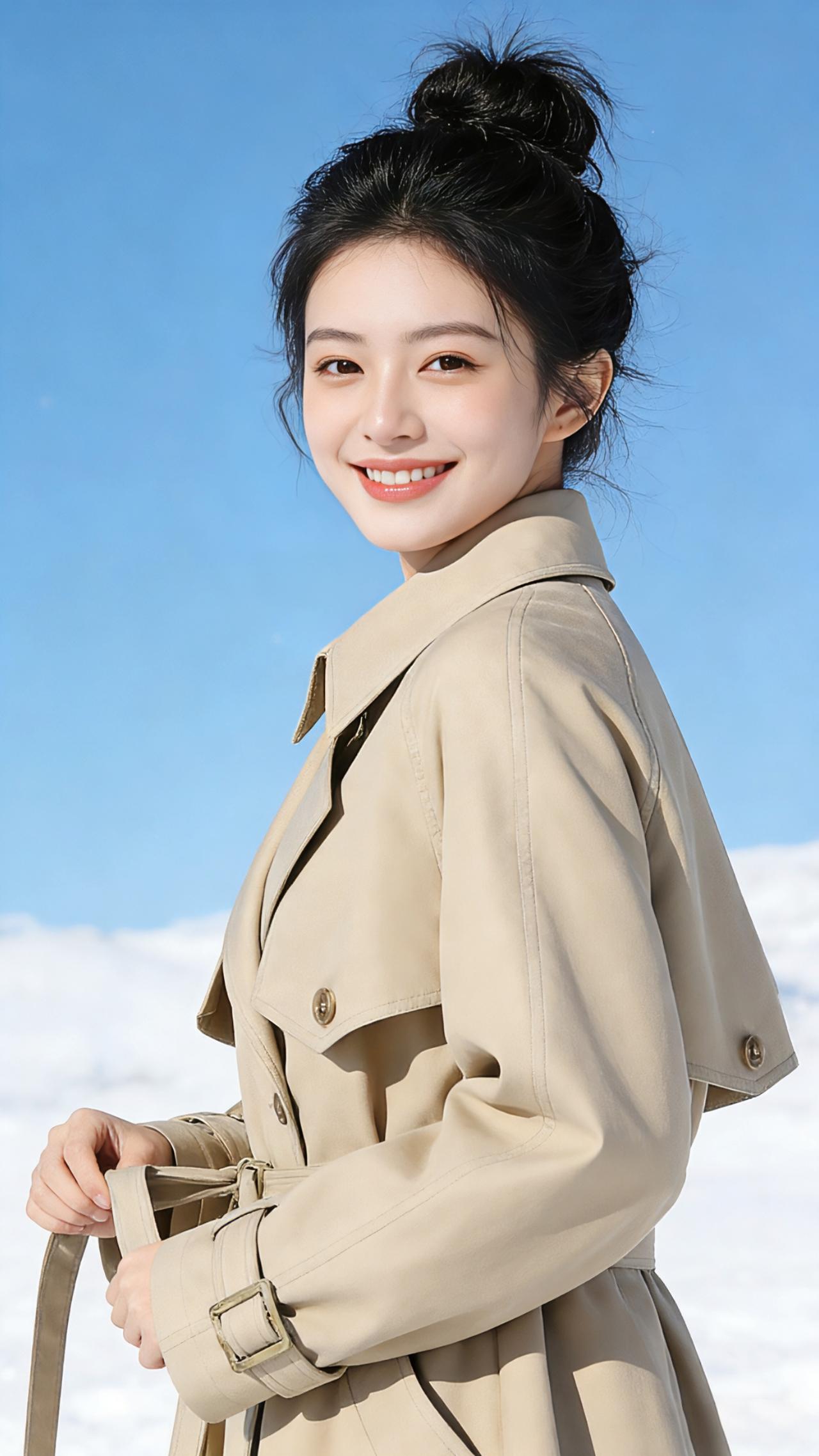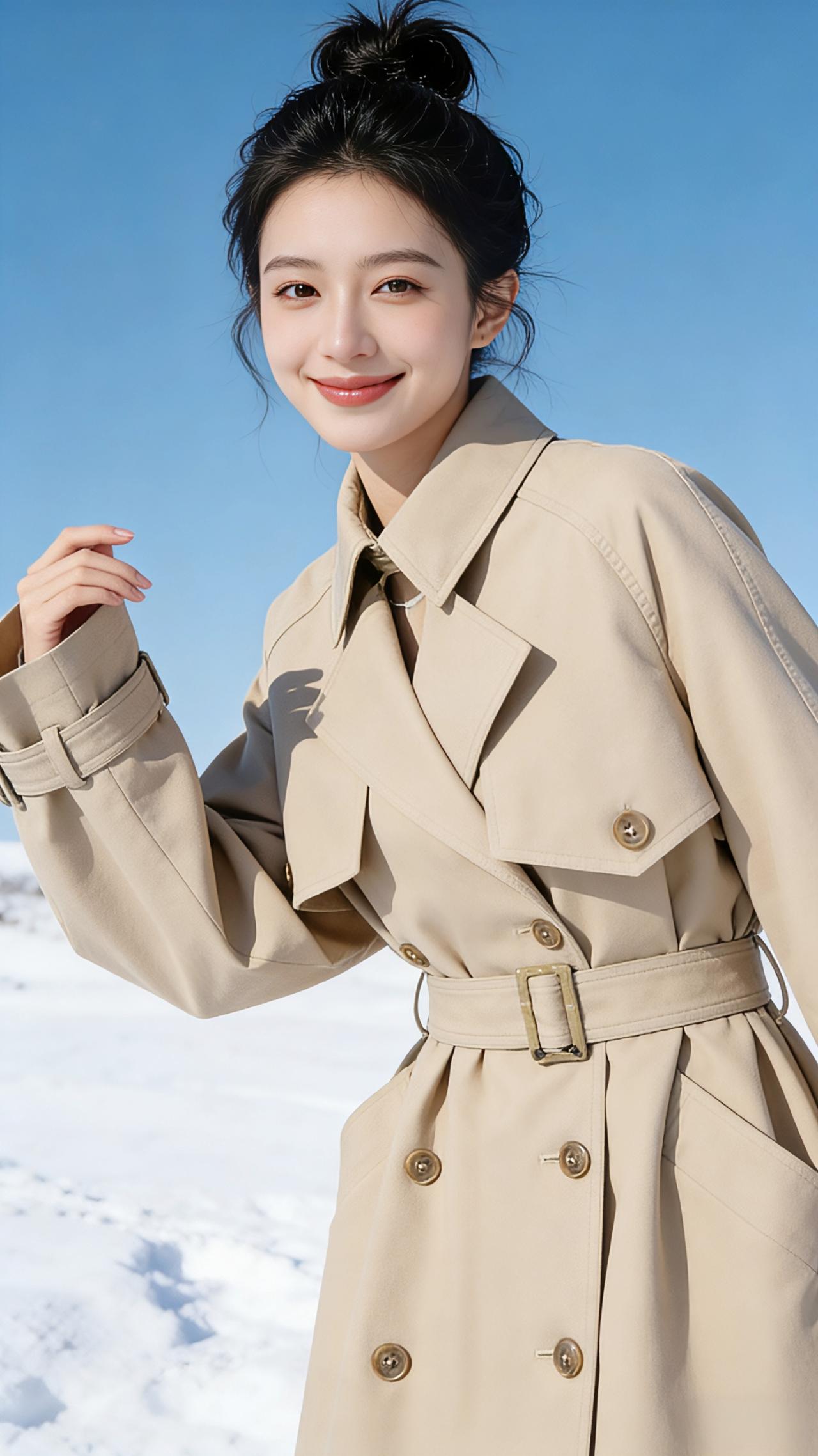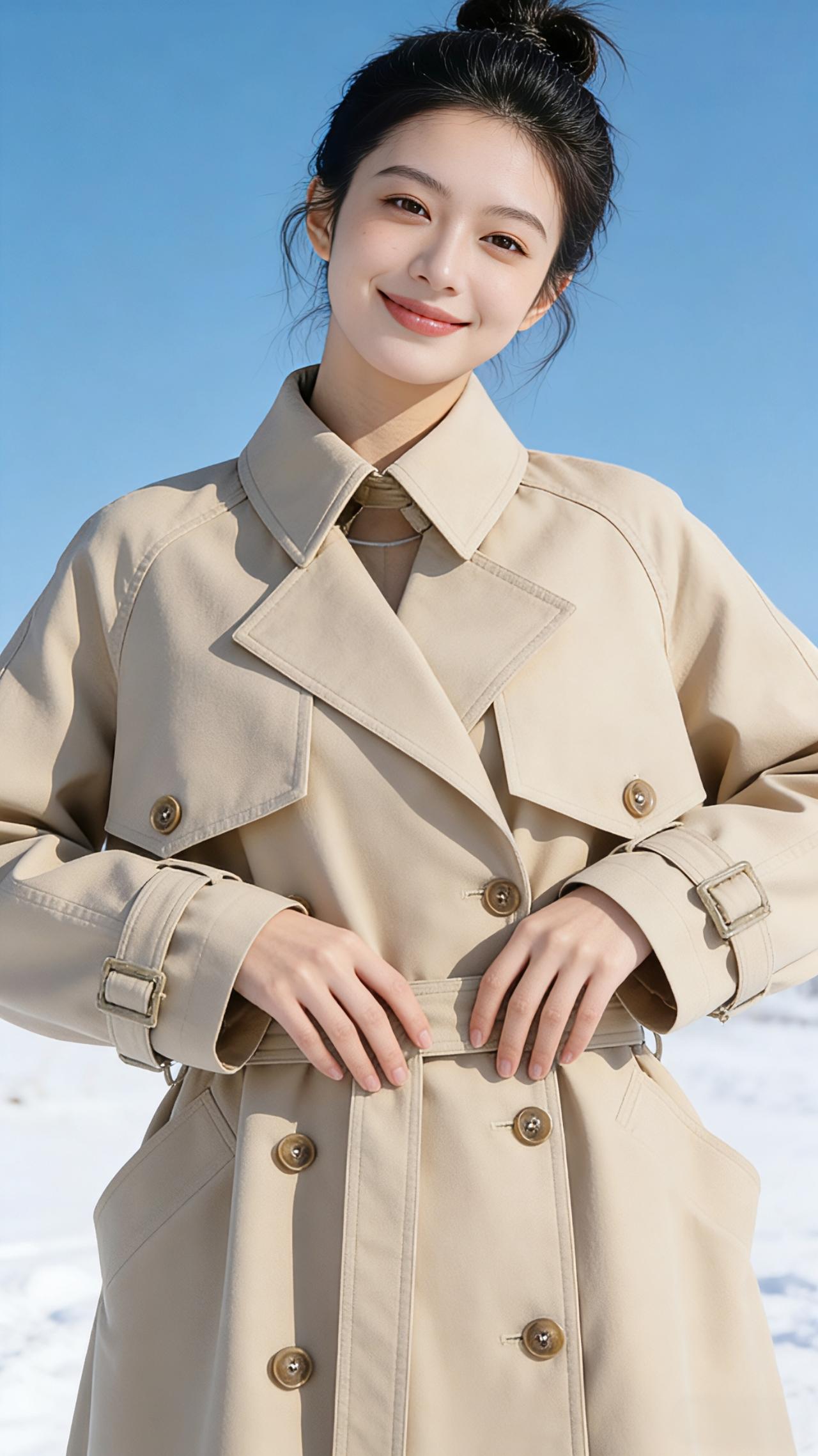 雪色风衣 雪后的蓝天像一块被擦拭得发亮的冰玉,干净得没有一丝褶皱。 她站在雪地里,驼色风衣的衣摆扫过蓬松的积雪,发出细碎的轻响。风掠过衣领时,她抬手拢了拢领口,指尖带着一点冰凉的温度。阳光落在风衣的布料上,泛着柔和的暖光,把雪地里的影子拉得又细又长。 丸子头被风吹得有些蓬松,几缕碎发贴在耳后。她侧过身时,风衣的腰带随着动作轻轻晃动,金属扣在光里闪着温润的光泽。笑容落进雪色里,比阳光还要明亮几分。 这是属于冬日的温柔。没有刺骨的寒意,只有干净的风、澄澈的天,和一件裹着暖意的风衣。她站在那里,就像雪地里长出的一株暖阳,让整个清冷的世界都柔软了起来。 每日搭配分享👗时尚穿搭 高级感穿搭 新年穿搭 冬季穿搭