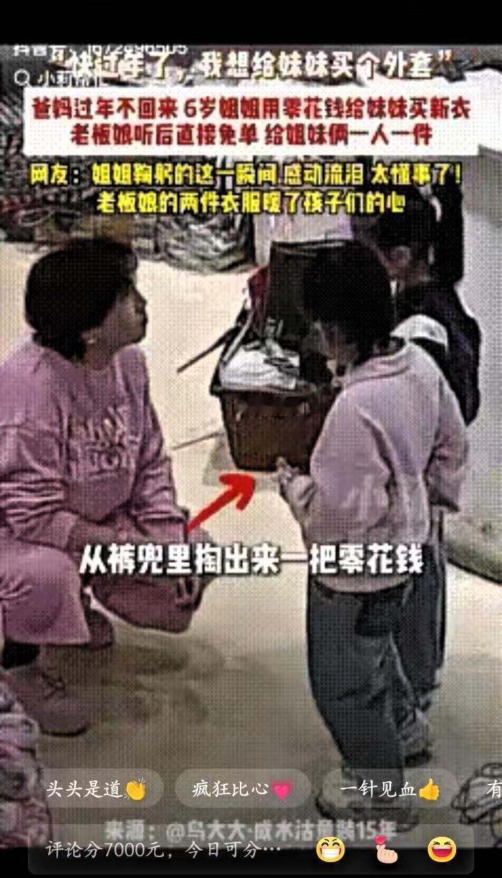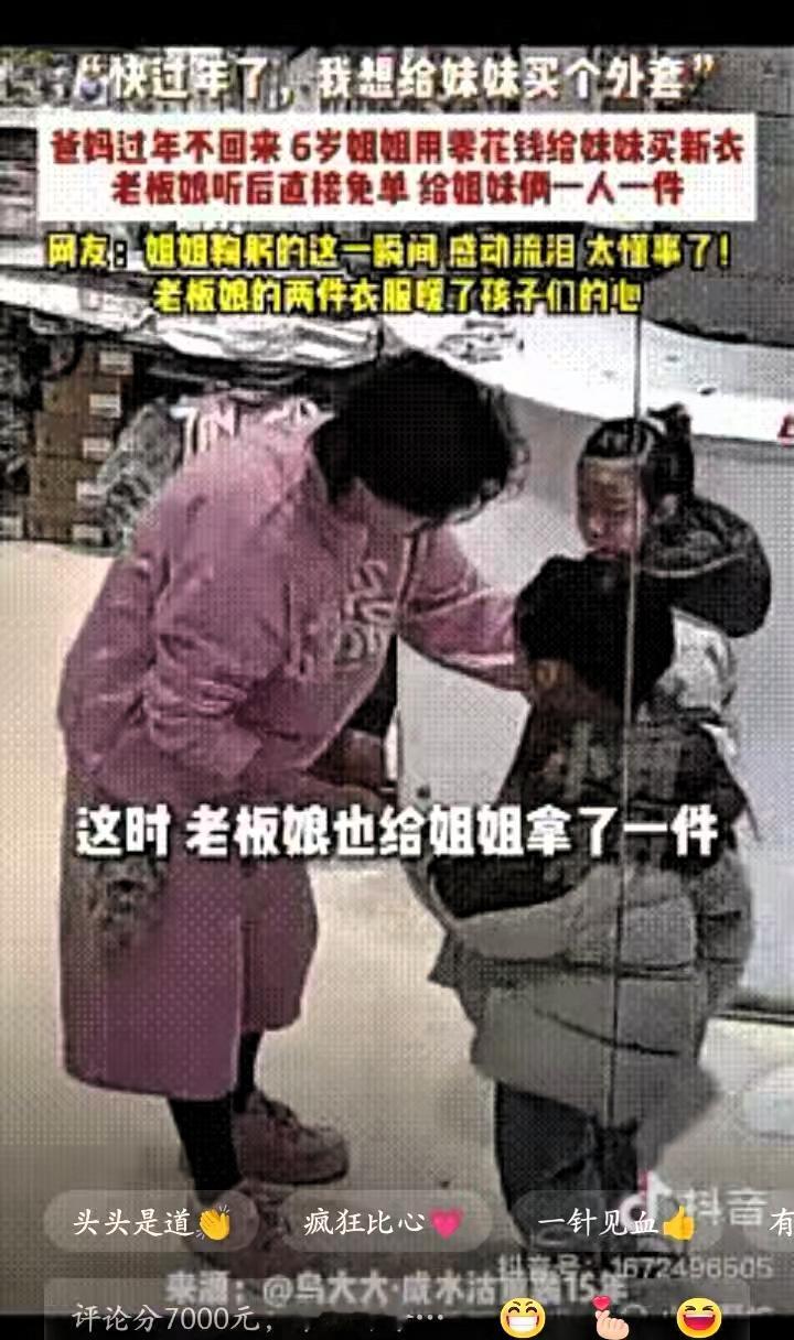 “活该发财!”天津,一童装店内进来了一对姐妹,店主以为是谁家孩子来寻求帮助的,姐姐手里攥着二十多元零钱,想给妹妹买件棉衣。天气寒冷,姐妹俩的脸冻得发红,姐姐的懂事和小心翼翼,让人看了心里很不是滋味。 店主没有计较金额,而是先拿出厚实的棉衣让孩子试穿,关心是否合身、是否暖和。她没有让孩子为难,反而主动赠送棉袜,棉衣也没有收费,当作新年礼物送给她们。临走时,还特意给了两块热红薯,让孩子路上取暖。 大女孩感动得鞠躬致谢,这一幕简单却很有力量。店主的做法,不只是物质上的帮助,更是在孩子最需要的时候,维护了她们的自尊,用温和的方式传递善意。 真正的善良,往往不是轰轰烈烈,而是在别人窘迫时,悄悄伸出手,不张扬、不炫耀,把温暖送到最需要的地方。这位店主用自己的行动,诠释了什么是本分与厚道。 这样的人,心里装着别人,做事有温度,生意自然会被大家认可。她的善举,也让更多人相信,平凡生活里,依然有很多值得感动的瞬间。