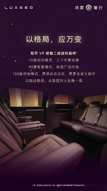 鸿蒙智行旗舰MPV智界V9内饰首发这款车型外展气度、内蕴万象,首发全新绒霞紫内饰,将静奢质感拉满,触感体验俱佳;同时搭载二排旋转座椅,以开阔的空间格局,从容适配多样出行与使用场景,尽显旗舰风范。余承东官宣智界V9绒霞紫内饰智界v9