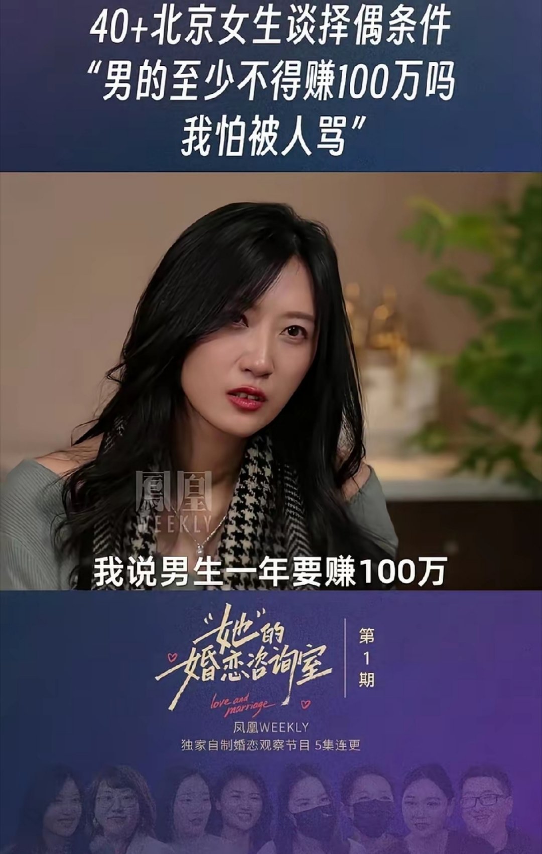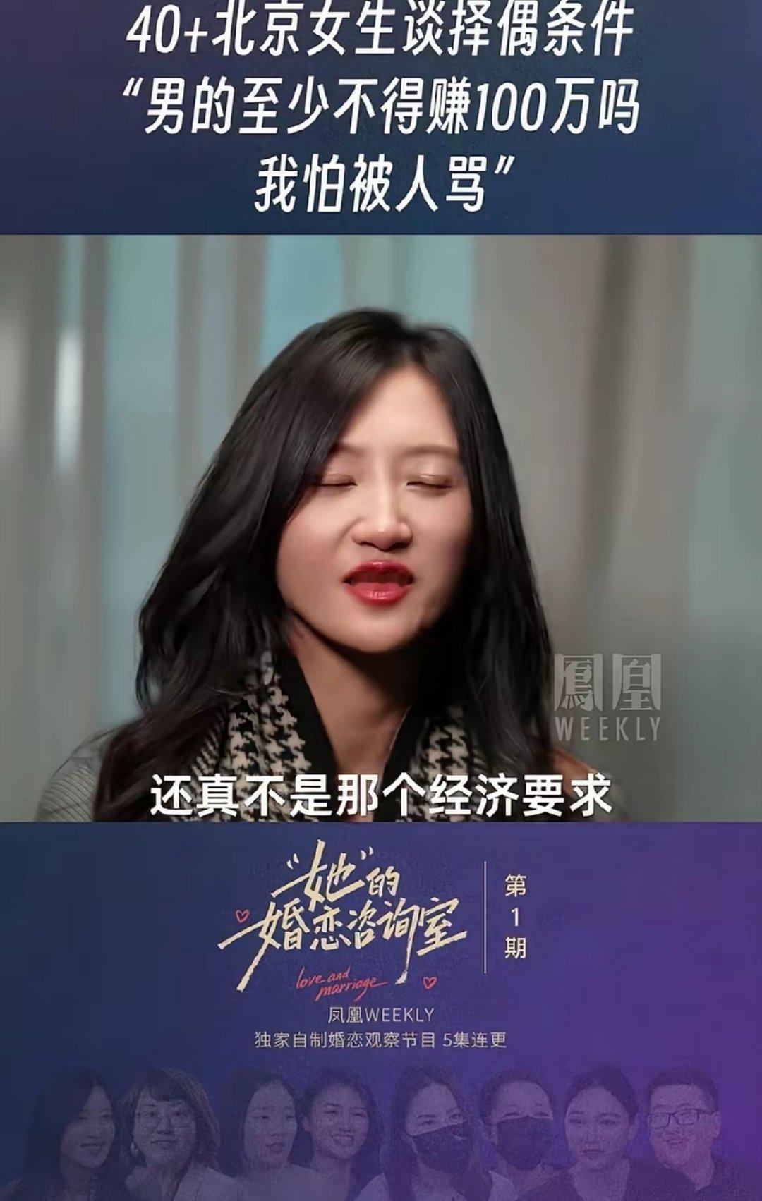 40岁的大龄剩女谈择偶标准:“男方一年最少也要赚100万吧,我怕说的这么直接,可能会被挨骂。”