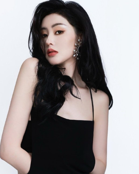 张天爱吊带黑裙,双手“插兜”,又酷又美