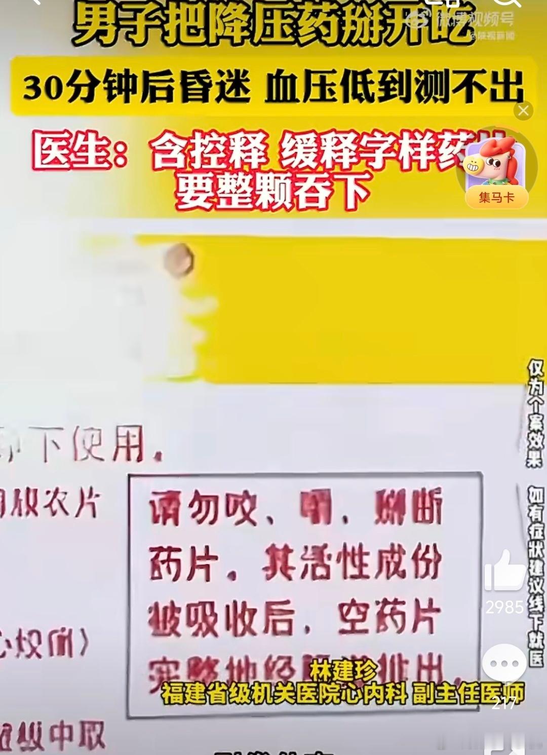 男子把降压药掰开吃30分钟后昏迷不是写了吗不让掰断,能不能谨遵医嘱和看好说明书再