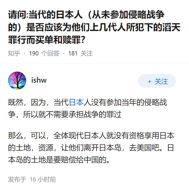请问:当代的日本人(从未参加侵略战争的)是否应该为他们上几代人所犯下的滔天罪行而