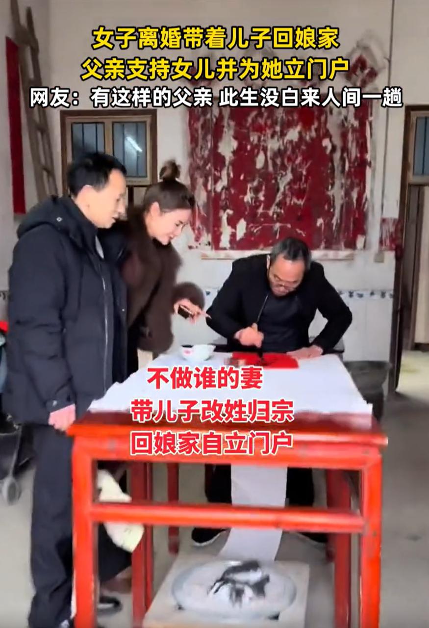 湖南,一女子离婚后带着儿子回娘家,可父母对她并没有任何指责,反倒是用鞭炮迎接,而女子也是带着儿子改姓归宗,在娘家自立门户,不过这也引起了不少网友的争议 从女子发出的视频来看,她回到娘家的时候可以说是非常喜庆,父母为了迎接她和孩子,也是准备了满地的鞭炮,而且还请来家族老一辈来写字,改姓 女子也是配上文案说:不做谁的妻,带儿子改姓归宗,回娘家自立门户 这场面很喜庆,却也引来了争议 有人说,这才是娘家人该有的样子。无论孩子在外面遇到什么难处,回头总有地方托住她。这样的父母给的不只是住处,更是底气。往后人生就算再遇风雨,心里那点力量不会散 但也有人反对:朋友的老丈人,在女儿出嫁前就叮嘱:男人如果没有犯大错,你不能随便提离婚,娘家也不会收你回来。那女儿结婚二十年,哪怕有过委屈,也从不敢轻易说离婚两个字 说到底,这两种态度就是对待婚姻两种退路的选择 一边是“随时可以回来”,一边是“出去了就别想轻易回头”。很难说谁一定对,或许都带着父母那辈人的经验与恐惧。怕孩子受苦,所以敞开大门;也怕孩子轻率,所以把门关紧一些。只是那扇门关得太紧,有时也关住了许多本该说出口的挣扎 至少从这个事来看,我觉得时代在变,家的意义也在变。家可以不再是嫁出去就回不去的地方,而是一个能接住你的地方。父母的态度,往往决定了子女敢不敢转身、敢不敢重启。那些愿意为孩子托底的家庭,不是纵容,而是给了她一份“还有路可走”的安全感