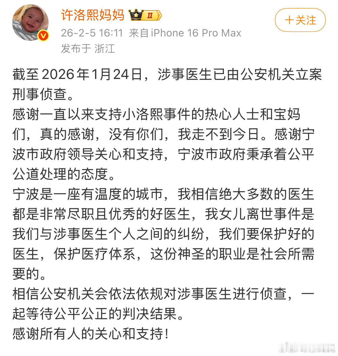 小洛熙妈妈发博近三月的实名维权,等来一级甲等医疗事故定性,等来院长副院长免职、主刀医生吊销执照,愿这样的事情不再发生