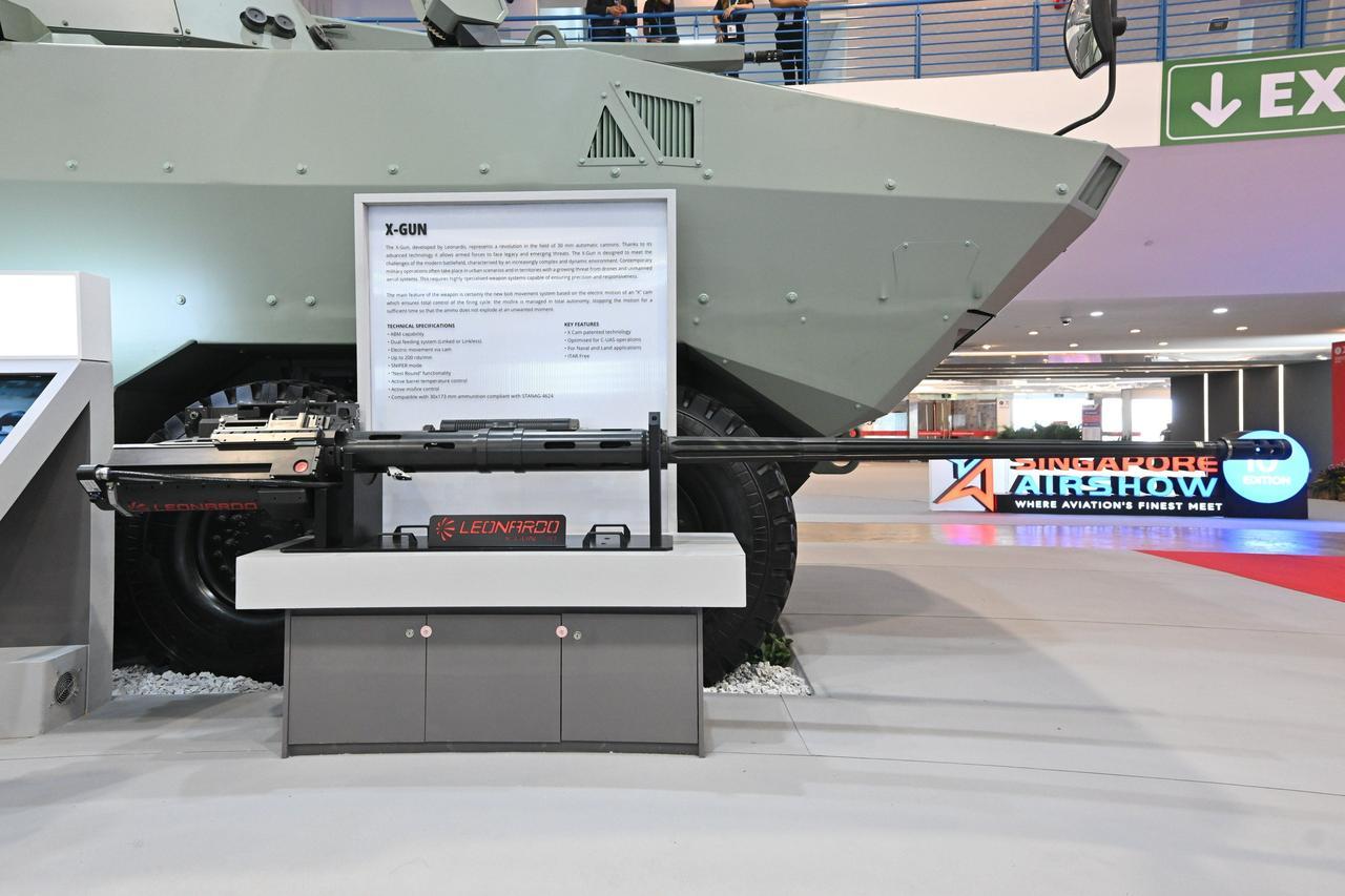 意大利莱昂纳多公司与新加坡科技工程公司(STEngineering)的一项合作成果近期在新加坡航展上亮相。图中所示的Terrex平台搭载了莱昂纳多公司新型30毫米X-GUN火炮,而ADDER RWS 30遥控武器站有望成为首款搭载该火炮的非意大利产炮塔。