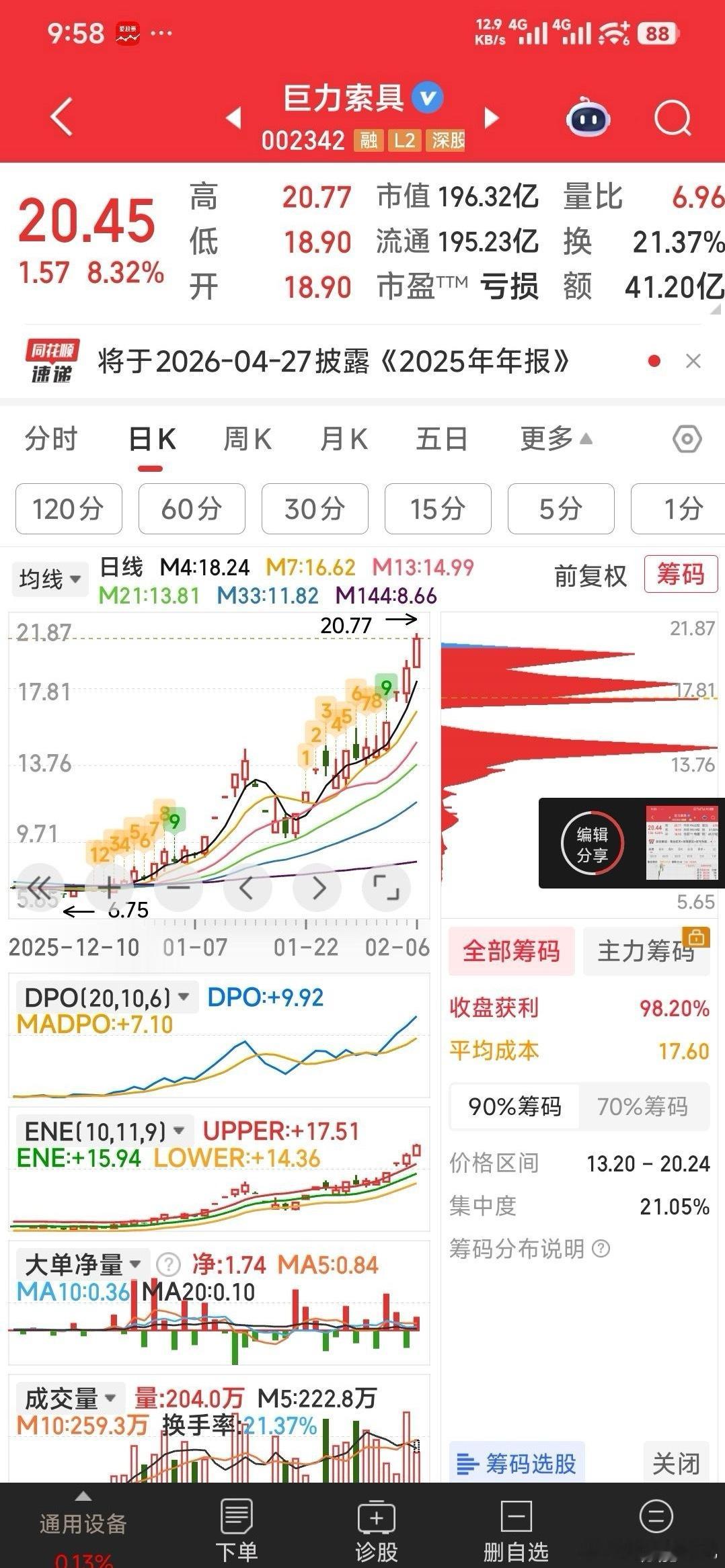 巨力索具吃肉17%见好就收。