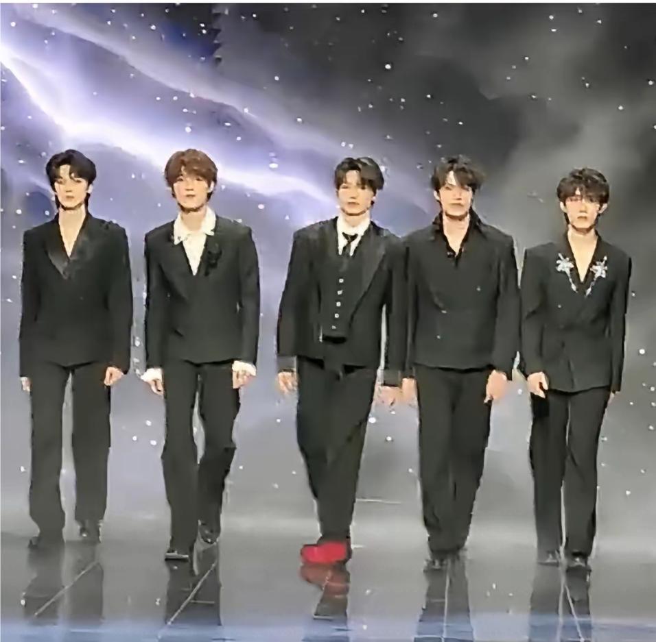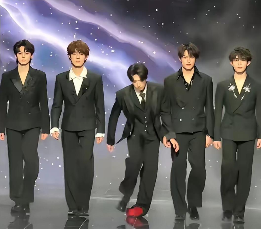 朱志鑫尴尬了,5位男明星并排霸气出场,走着,走着,中间的朱志鑫脚下一滑,身体猛地向前倾,差点直接扑出去,鞋底都见到,这次他脚怕是爱伤了吧,隔着屏幕看到都疼,可他马上调整,完全没影响其他人,跟上步伐,神情自若,坚持走下去。