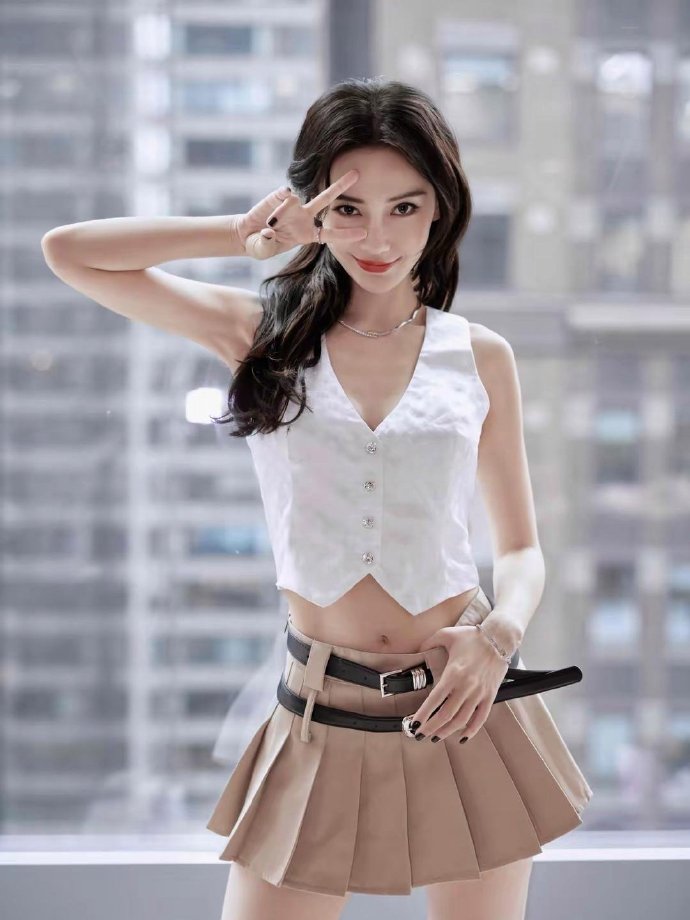 杨颖白色上衣短裙写真,活力满满!你觉着这套怎么样