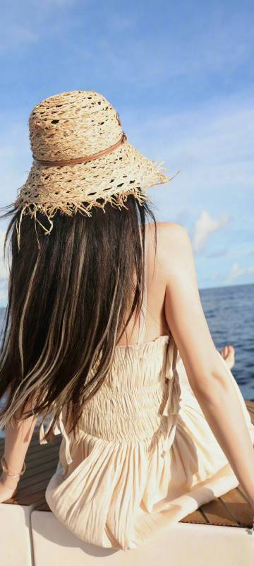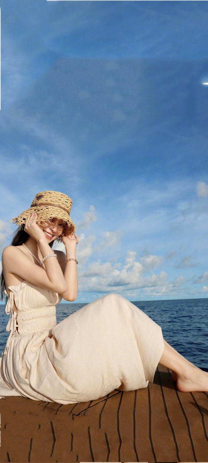 孙允珠,淡蓝色吊带长裙完美展现了她的优雅气质和身材优势。