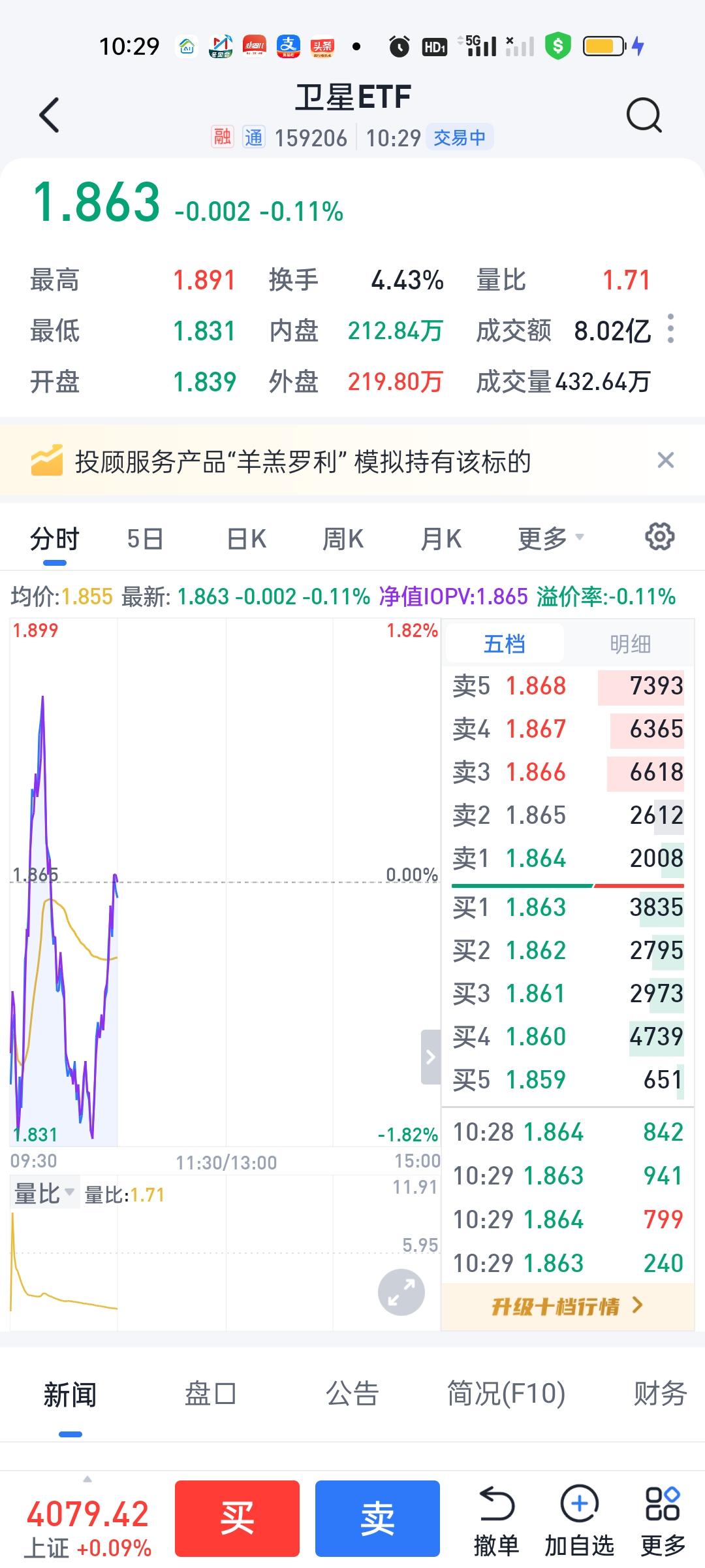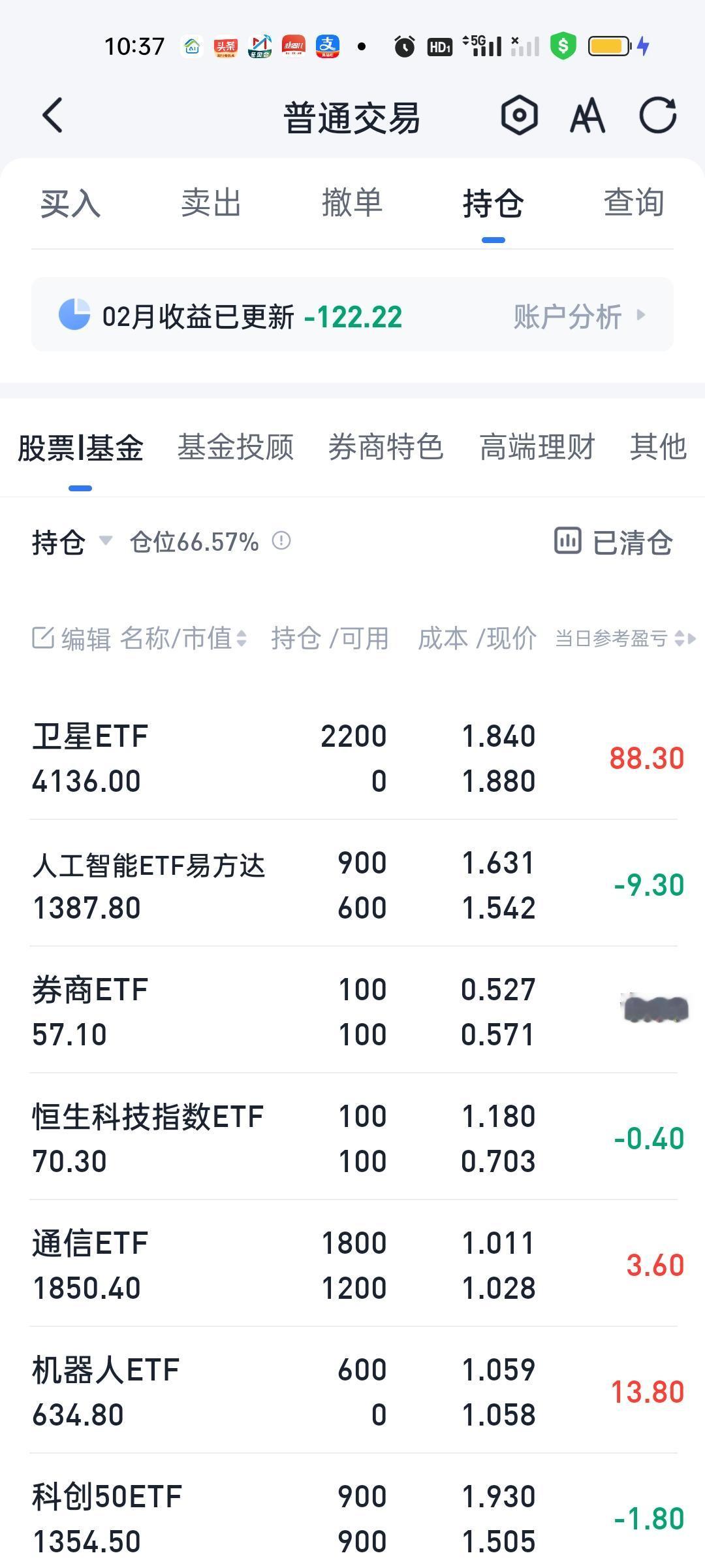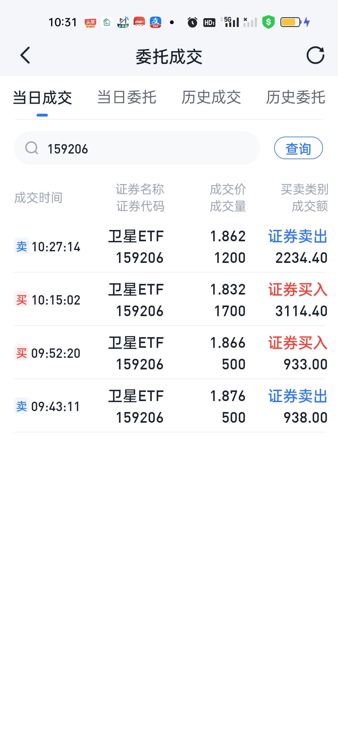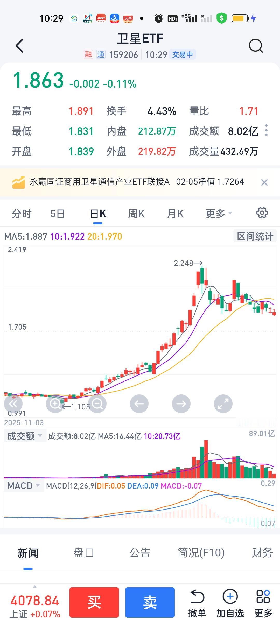 卫星ETF这个操作很有意思,抄底居然抄到了最低点啊。真的是无心插柳柳成荫。操作方面先做倒T后做正T,在1.832这个位置直接买进了1700股,因为我前面进行了一次止盈,净挣400元清仓了。这次打算挣600第二次清仓。1.831/2.248=0.8145,目前从高点下来已经跌了18.55%,跌20个点再考虑重仓。
