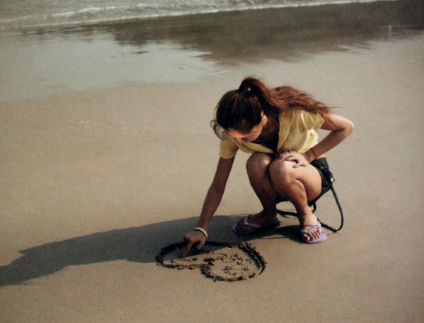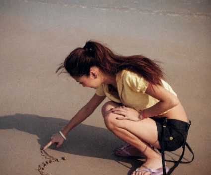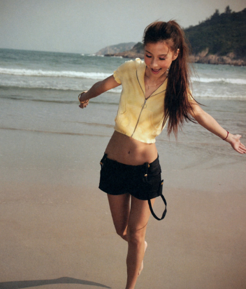Angelababy早期沙滩写真,这个身材也太好了吧,小腹的纹身终于看清楚了