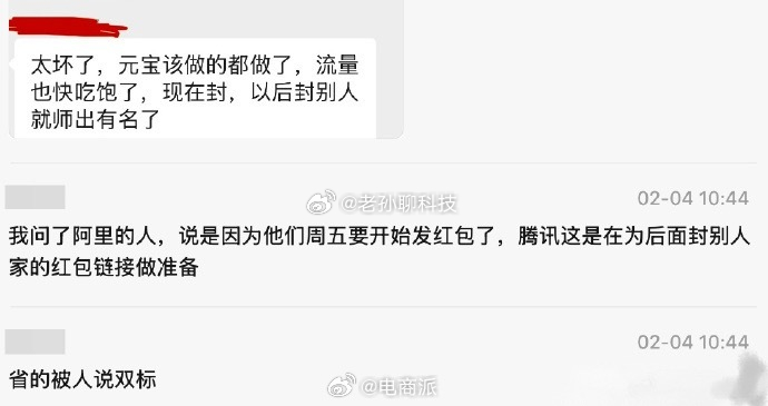 阿里千问红包链接被微信屏蔽腾讯:现在知道为什么提前屏蔽元宝了吧?我连自家人都给封