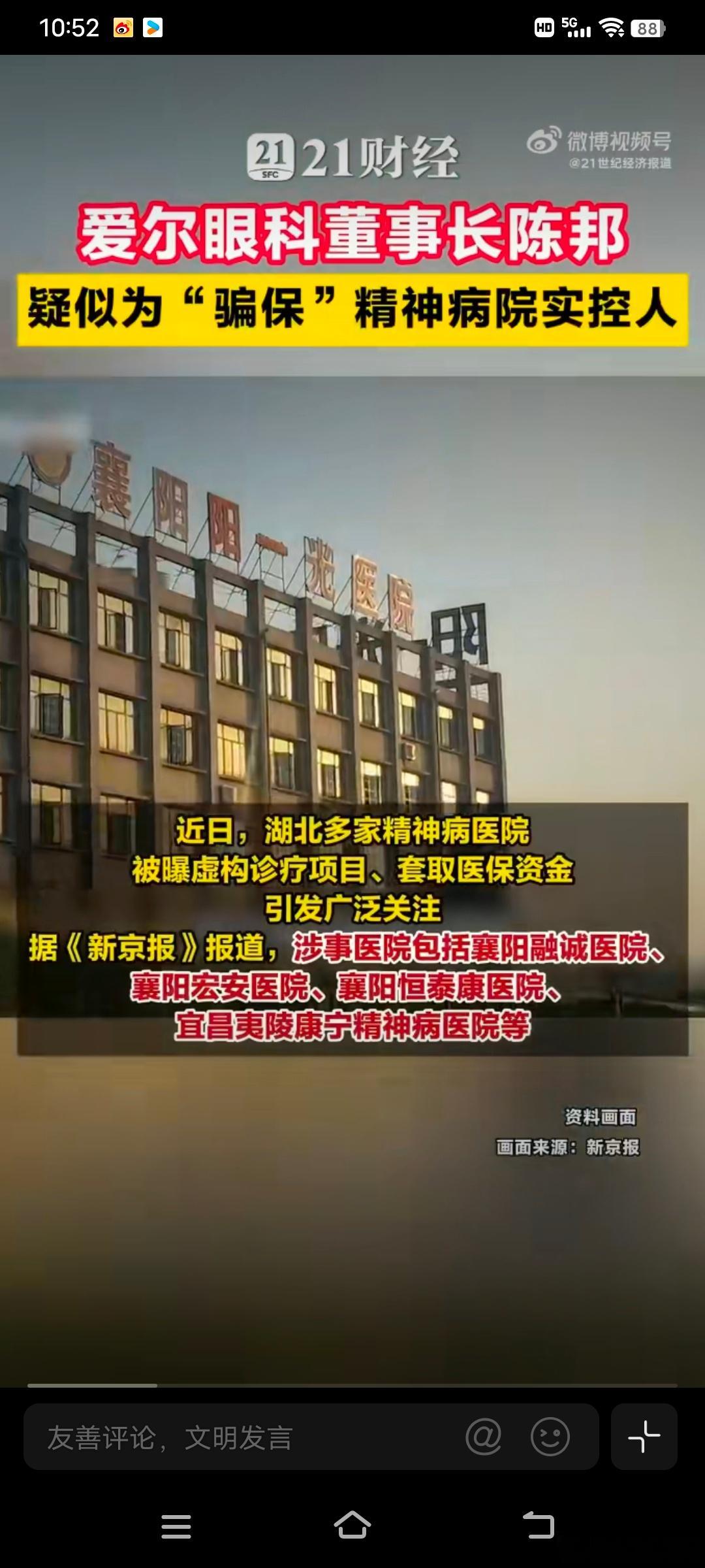 爱尔眼科回应疑控股骗保精神病院爱尔眼科董事疑为骗保精神病院实控人 从企业回应到关联疑问,舆论的焦点始终绕不开“医疗诚信”四个字。精神病院的特殊属性,让“骗保”二字更显沉重——关乎患者权益,更关乎行业底线。期待相关方拿出扎实的证据链,厘清关联、说明情况,这是对信任最基本的维护。