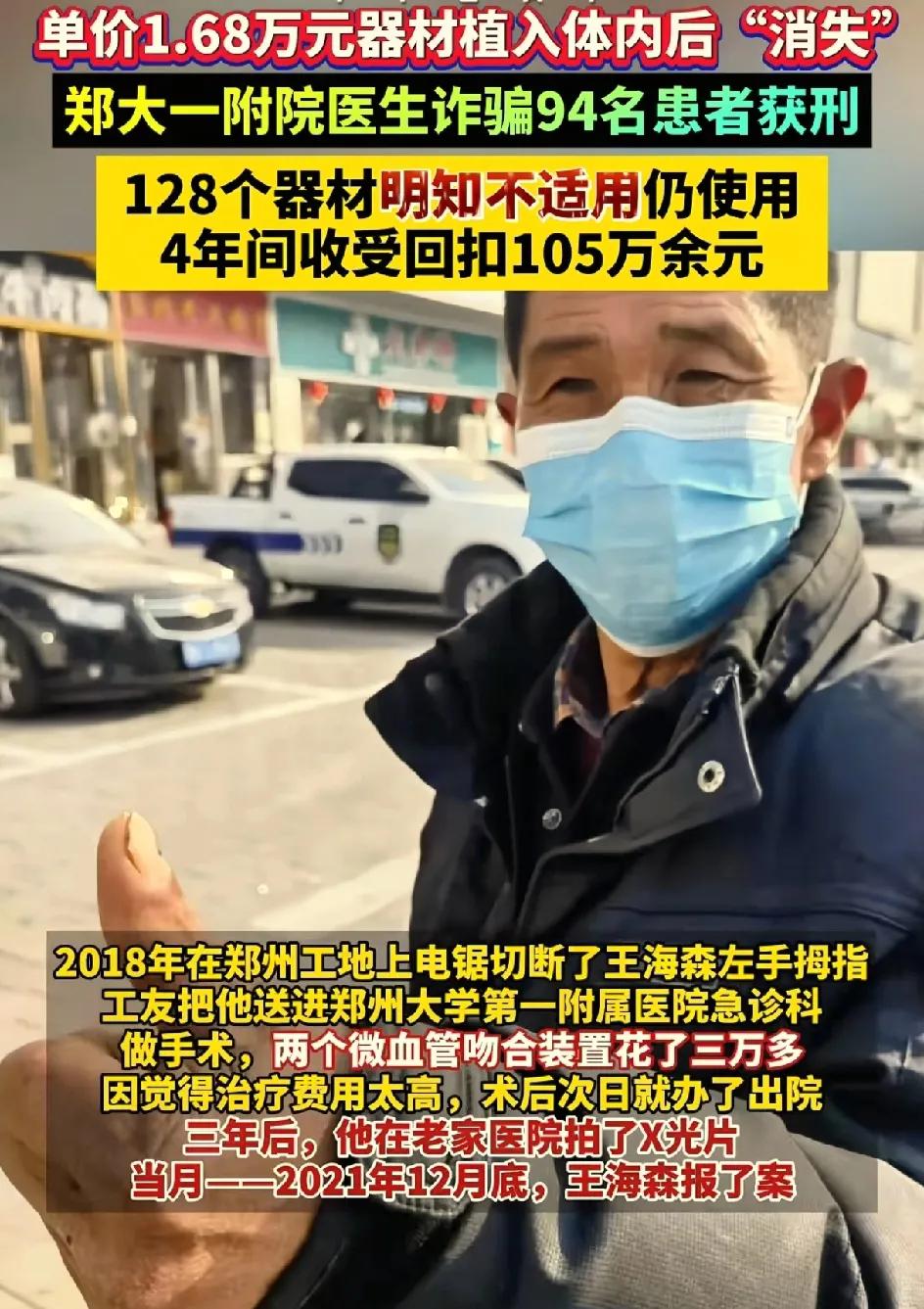 良心何在啊?郑大附一外科,王福建医生!长得一副值得患者信任的样子。病人找你,是把健康托付给你,你的职责是救死扶伤。你不能拿着手术刀当土匪啊!骗取了94名患者,105万。坑害了94个患者的健康。这钱你花的安心吗?白衣天使,医者仁心。你的心为什么这么狠?现在好了,账款全部没收,被罚款40万,还吃了牢饭。当然,这只是个别医生的不法行为,我们不能否认全体,我们依然应该尊敬并尊重其他医生的医德以及专业水平。