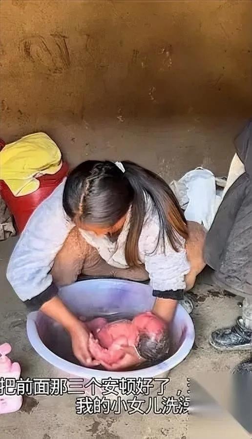 刷到条抖音,我直接懵了。 99年的四胎妈妈, 顺产第六天就带四个娃出门? 大冬天的,刚出生六天的小的裹着薄毯子,老大老二光膀子剃头发,女儿穿开裆裤屁股还沾着泥;去奶奶家吃饭,鸡和菜板黑得像煤球,几个人蹲在地上扒拉冷饭;孩子洗头发的水是黑的,新生儿直接脱光了泡在里面搓—— 不是我矫情,这哪是“过日子”?顺产第六天的妈妈自己还在流血,孩子连最基本的保暖和干净都没有,99年的人,怎么养娃比我妈30年前还糙? 翻评论区好多人问“这是哪”,不是想地域黑,是真的难受:都2024年了,怎么还有妈妈带着娃过这种日子? 你们刷到这条没?我看完心口堵得慌,当妈后见不得孩子遭罪……到底是没人告诉她该怎么疼自己和娃,还是有啥说不出口的难处啊?