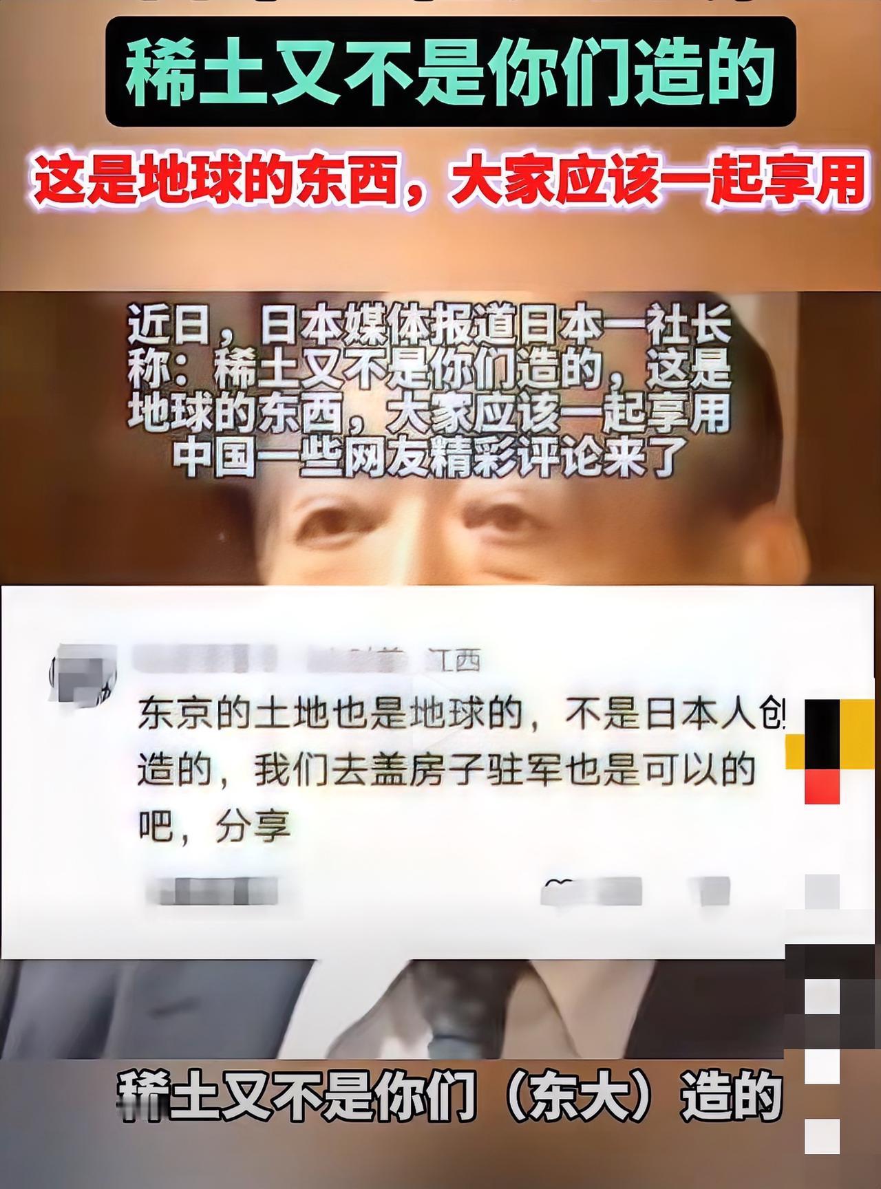 “稀土是地球馈赠,大家应一起用!”日本这社长的话真是让人无语。 当地时间2月3日,日本TBS电视台节目里,一个做电动轮椅的社长,因中方收紧对日稀土出口生意受影响,就说“稀土是地球馈赠,大家应一起用”。 按这逻辑,石油也是地球给的,日本咋不找产油国免费要油呢?海洋是全人类的,日本还把核污染水往海里排。 其实,稀土不是“挖出来就能用”,它包含17种元素,性质差异大,从复杂矿物中高效低成本分离提纯很难,中国在这方面有很大优势。 日本光想着占便宜,却不看看自身能力,这“清新脱俗的日本逻辑”真是可笑。