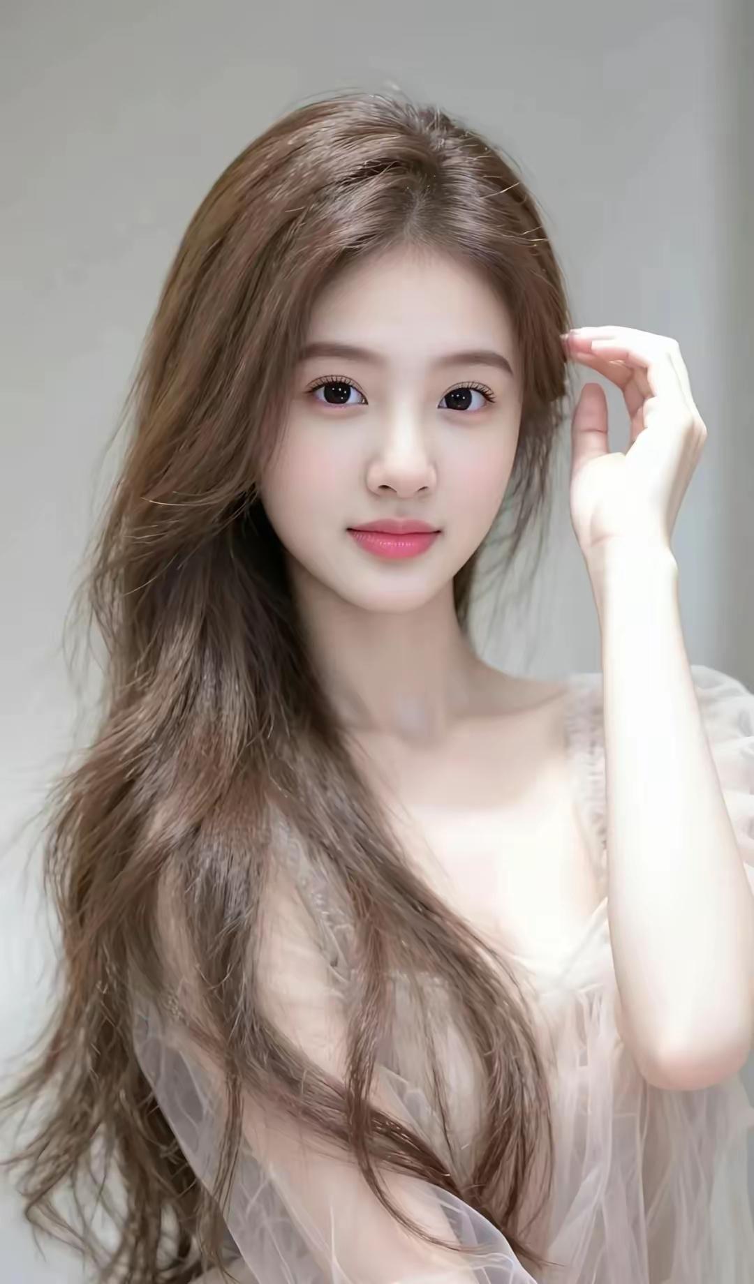 温柔甜美的少女,轻抚发丝,梦幻的氛围,仿佛置身童话世界。🌸💖