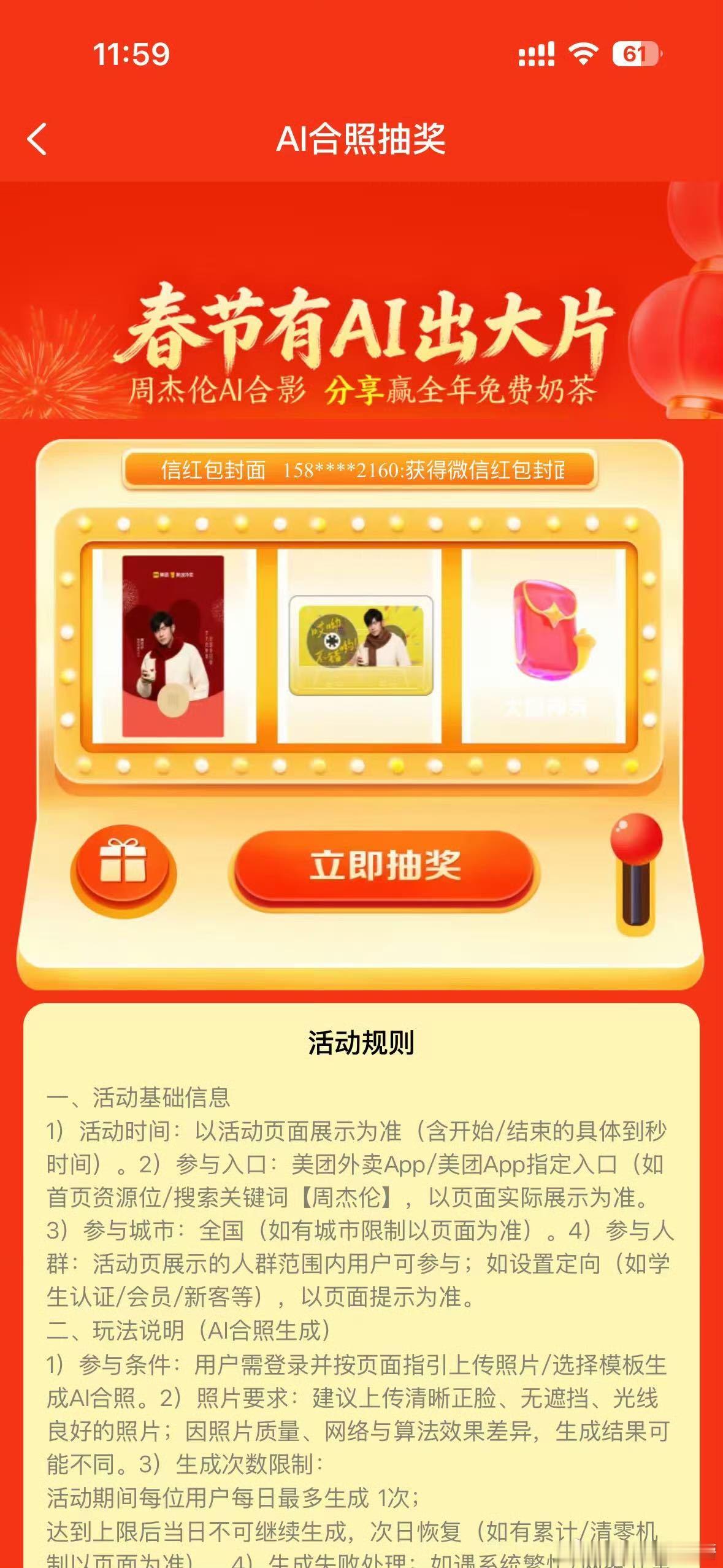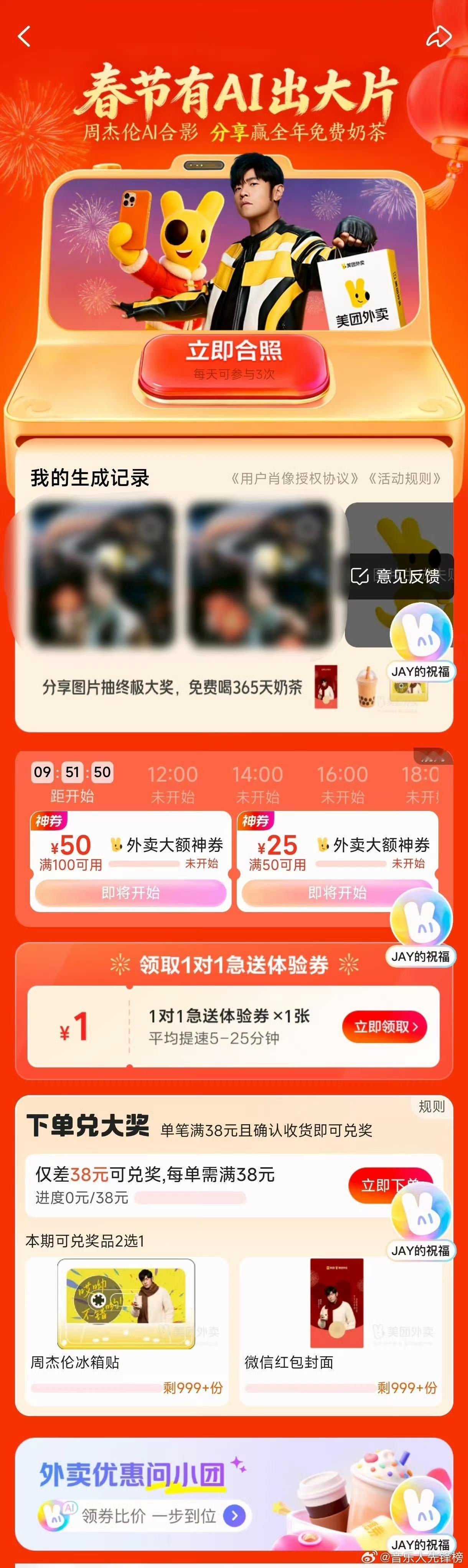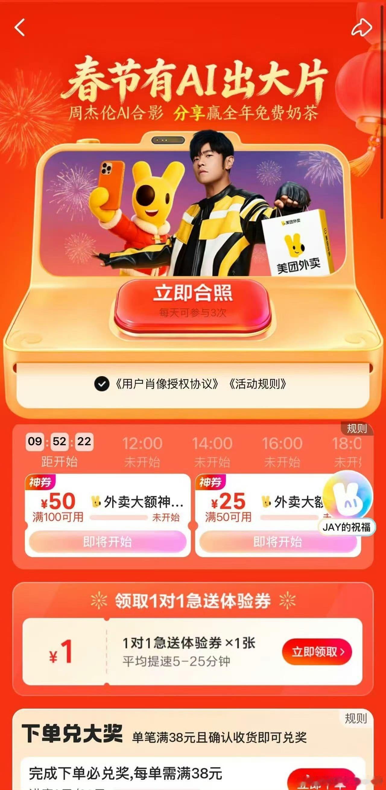 美团外卖这波AI合影简直是神仙活动啊!只要上传一张照片 ,就能无痛拥有和周董的专属新春合影!人生照片又+1!不仅各家品牌都出动来一起玩,甚至文旅小编们都来合照,0人能拒绝和顶流同框的快乐!现在去美团App搜【周杰伦】参与,还能赢全年免费奶茶!与周杰伦合拍新春大片