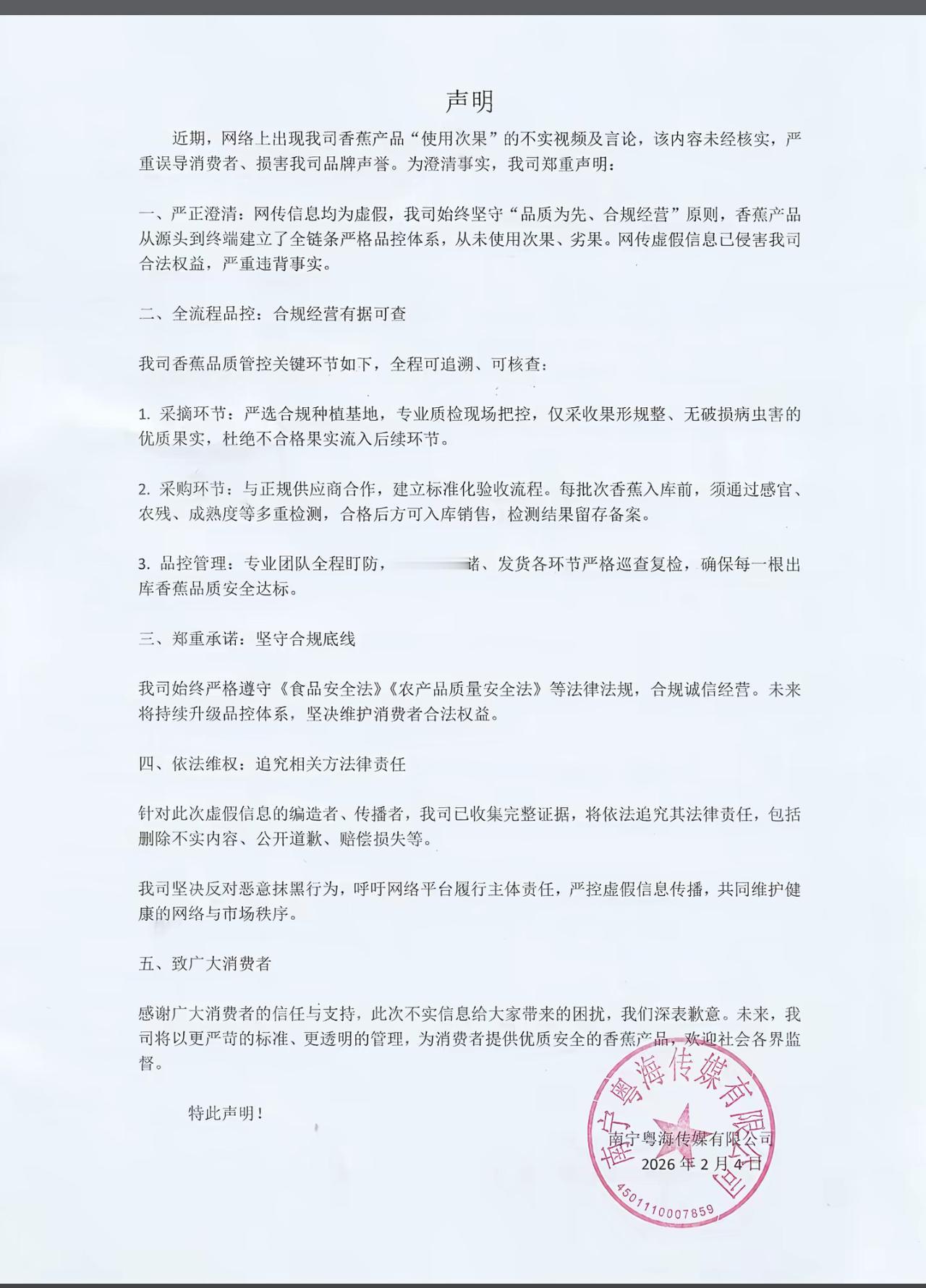 “单根香蕉在原产地就是喂猪的。” 这个节奏这几天被带的满天飞。 一些广西IP发文, 说“丈母娘”又被割韭菜, 董宇辉变废为宝, 喂猪的香蕉拿来高价卖…… 关于这些言论, 商家已经发布了辟谣声明, 说会对这些造谣者进行取证, 将追究其法律责任。 关于单根香焦的问题, 商家解释的非常清楚, 就是方便运输, 减少快递路上香蕉的损伤。 对于香蕉的品控, 专业团队全程盯防,入库、存储、发货各环节严格巡查复检, 确保每一根出库香蕉品质安全达标。 商家给出了承诺, 保值保量包售后。 让大家放心吃。 有人质疑, 他们网购的单根香蕉为什么要便宜一些。 对于这件事, 商家在评论区给出了说明, 单根香蕉也分两种情况。 一种就是“主动”单根, 在香蕉里面选择好香蕉单根, 那些不合格的就拿去做肥料或者是喂猪。 而有些单根香蕉是在“差生里面挑一些好的出来, 这就是“被动”单根。 这就是一些所谓的单根香蕉便宜的真相, 也是“喂猪的单根香蕉”的真相。 一些别有用心的人, 故意发布一些不客观的信息, 故意歪曲事实, 引导一些不明真相的人跟风, 最后导致优质产品蒙受不白之冤, 给企业带来巨大的伤害, 这已经不是质疑产品本身, 而是在对企业网暴。 支持商家拿起法律武器, 维护企业的合法权益。 散会! 董宇辉