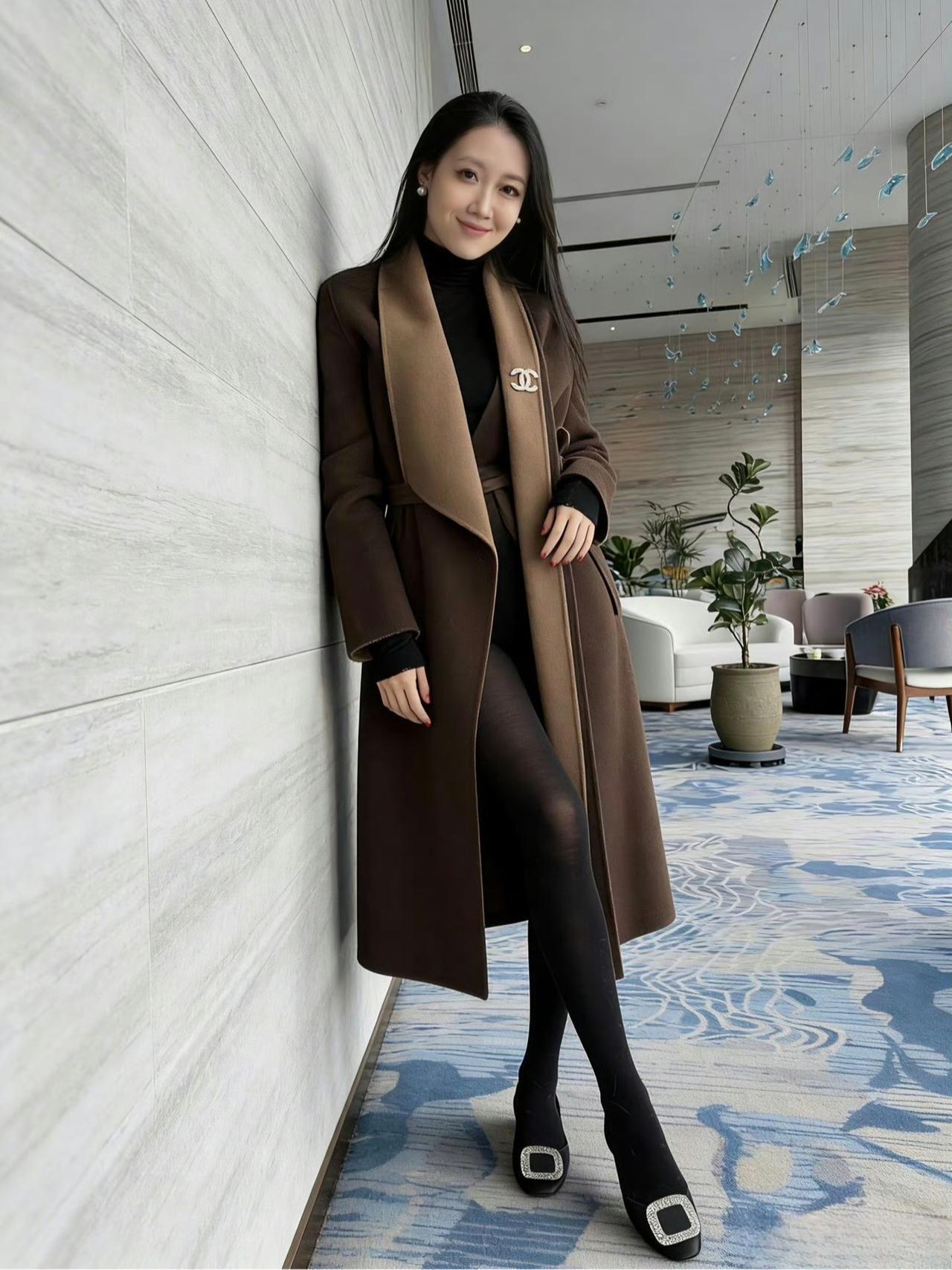 这套咖色系穿搭高级感拉满!双面呢大衣的深浅棕拼接自带质感,内搭全黑组合利落又显瘦,带钻鞋子是精致的小心机,很适合商务通勤或轻奢场合~咖棕色系穿搭 咖色大衣搭配 黑咖色系穿搭 什么样的穿搭可以成为气质女神?