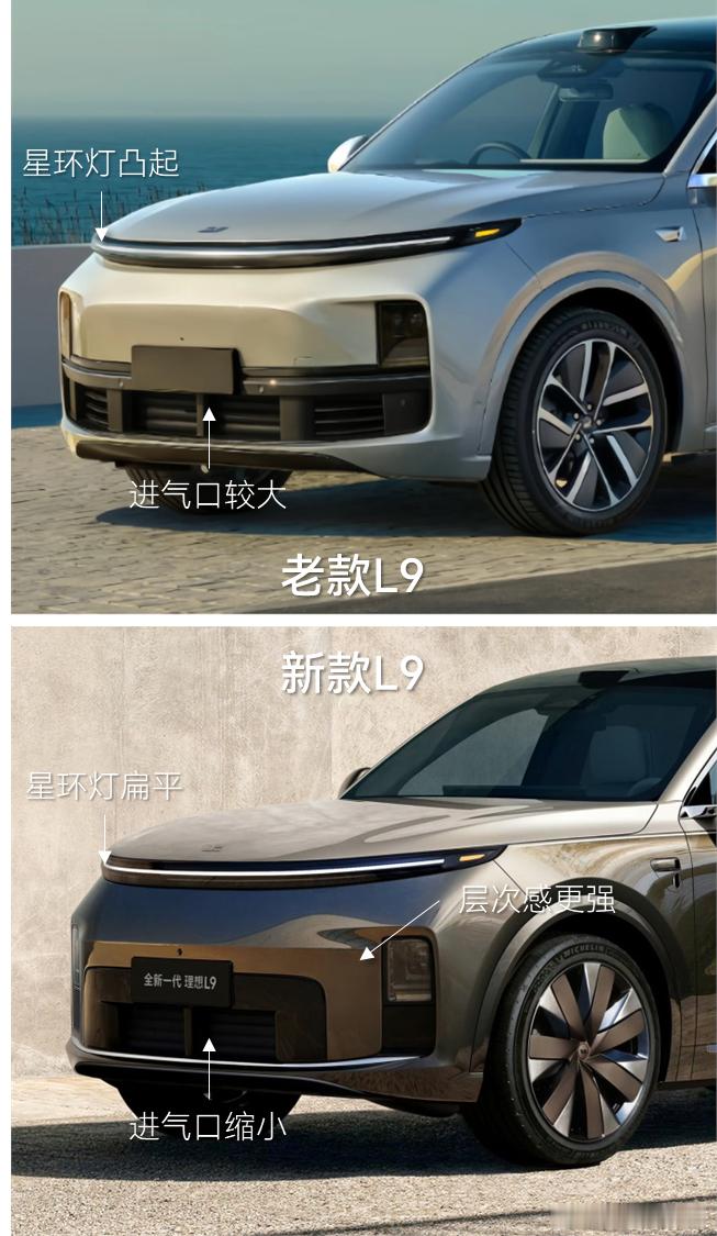 全新一代理想L9的前脸变化,不到换代的级别,但是也不小,科技感和整体性更强了