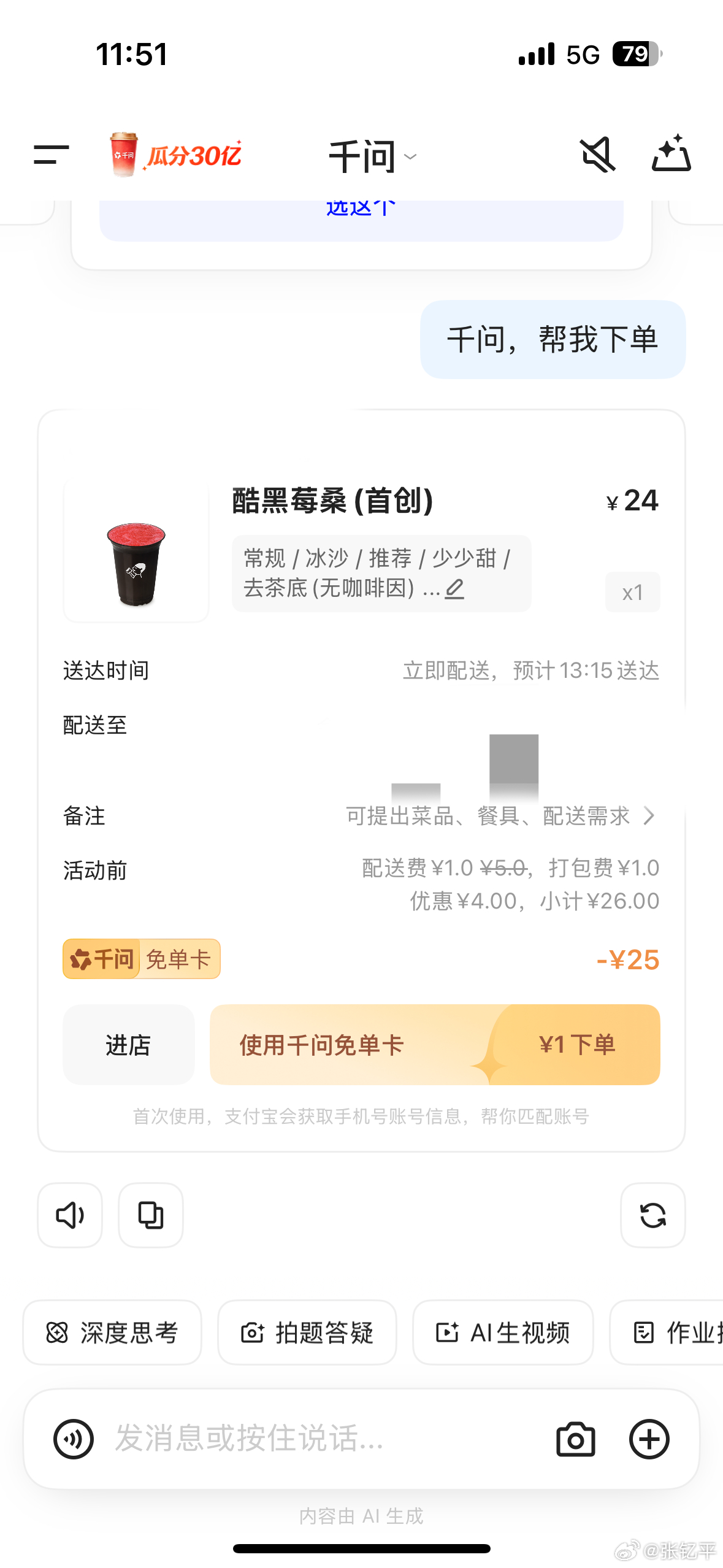 千问 免费奶茶好好好,想给我儿子点一杯果茶,活动太火爆了。