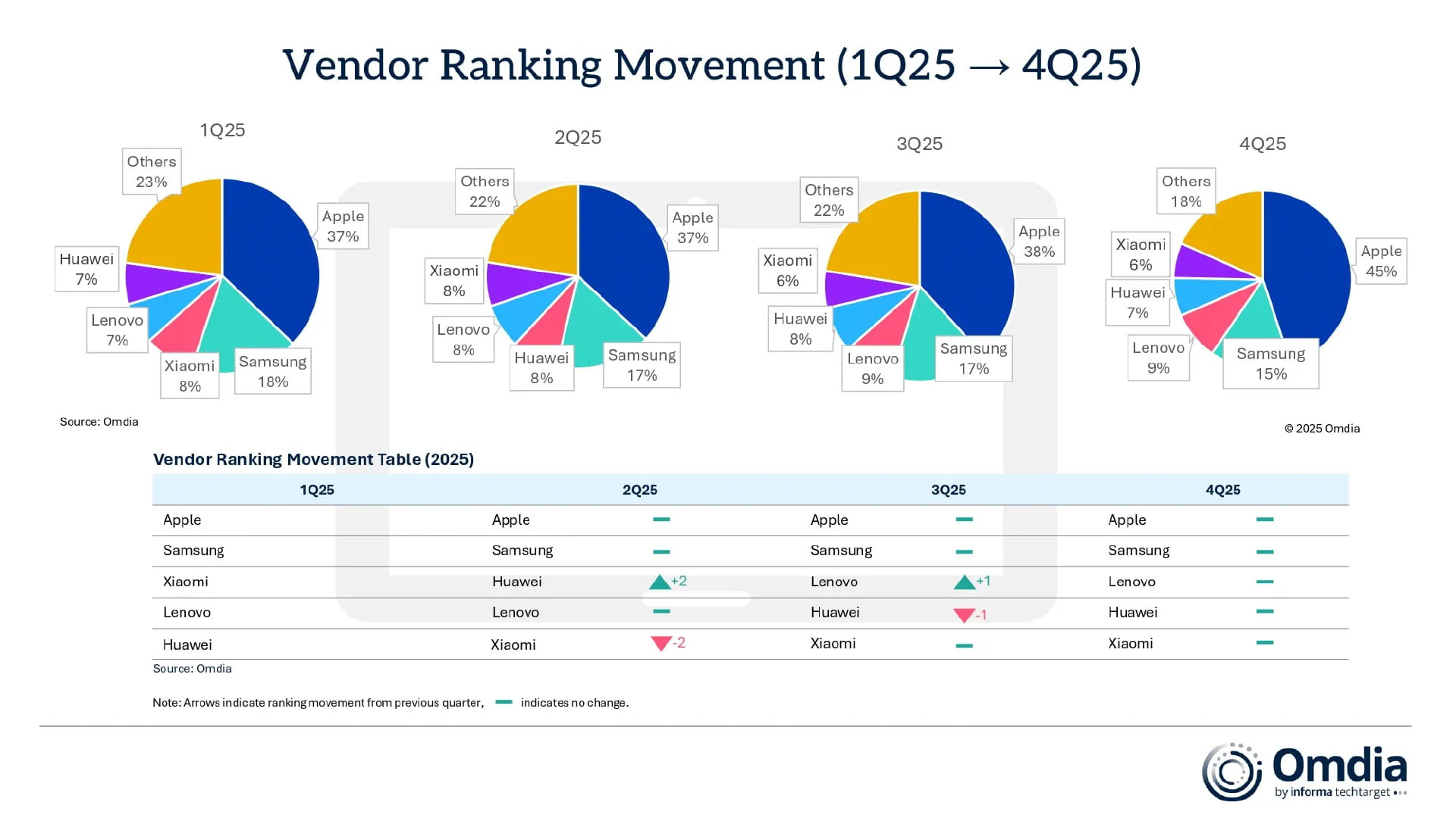 2025 年全球平板电脑出货量增长 10%,这是怎么个事儿?是不是打破了大多数人的认知? (Omdia 报告说是节假日和内存限制的原因)市场占比上,确实是 iPad 和其他的天下(图二)。