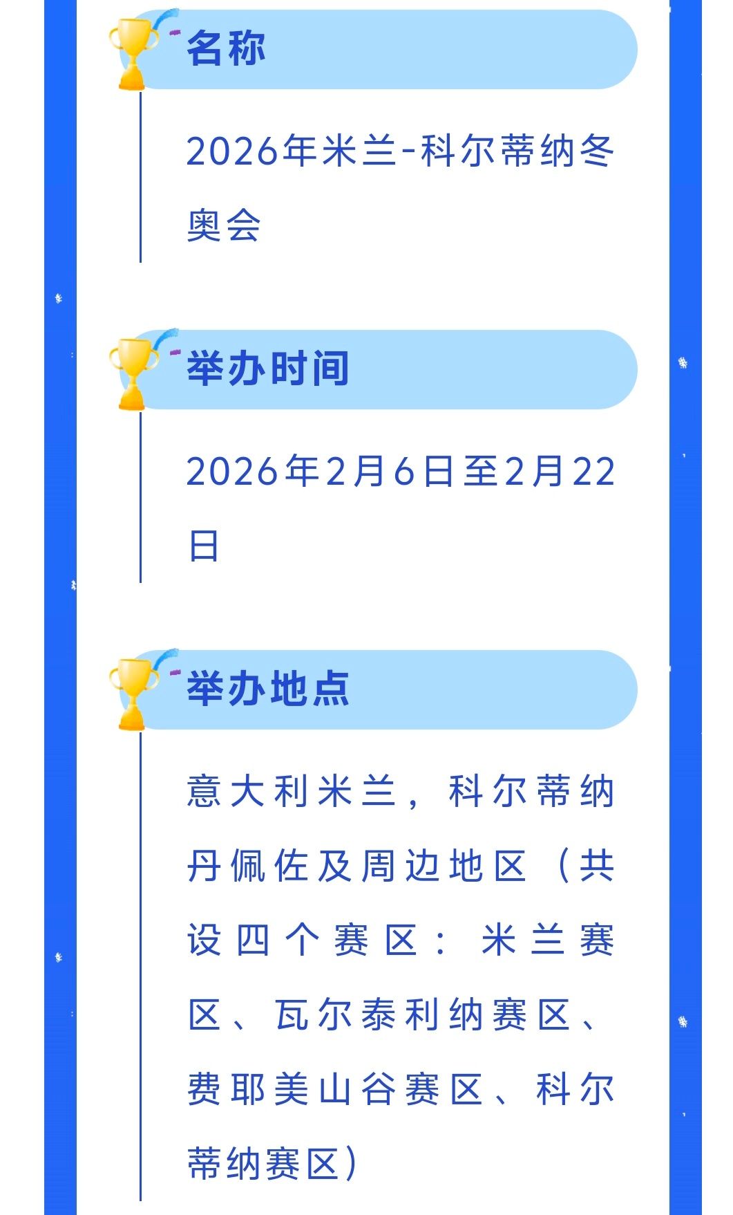 3分钟看懂米兰冬奥会本届冬奥会是意大利继2006年都灵冬奥会后,时隔20年再次举办冬奥盛会。具体有哪些项目?赛事有什么亮点?狐说体育一文带你看懂米兰冬奥会↓↓↓