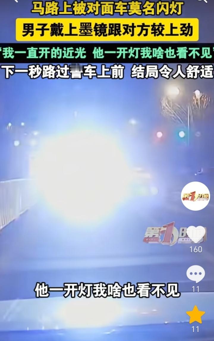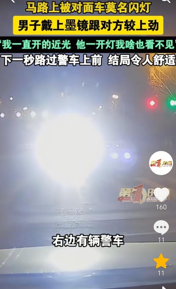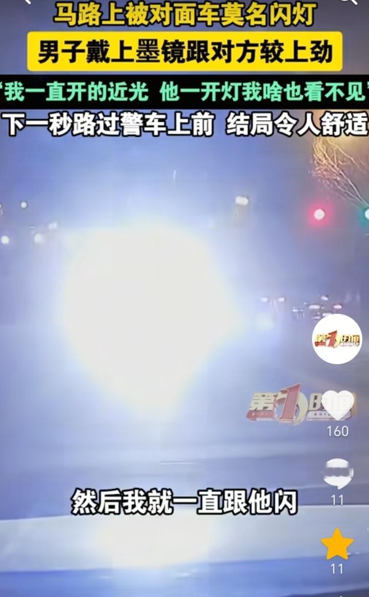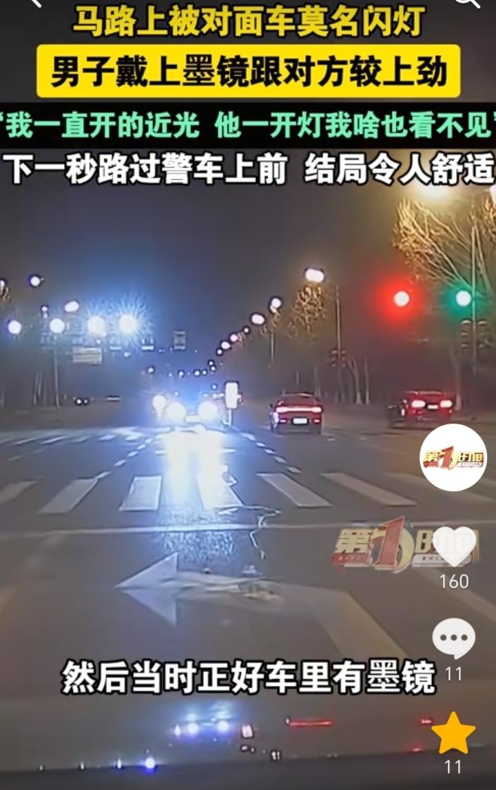 结局很解气!山东济南,男子驾车到路口准备左转,发现有一辆新能源电车不断开闪光灯,自己开的是近光灯,因为对方一直开闪光灯,男子就什么也看不见,当时正好车里有墨镜,于是男子就戴上墨镜和对方较劲,正好右边有一辆警车,民警也是发现了开闪光灯的车辆,于是直接就开车冲到了对方车辆旁边。 最讨厌这种晚上开闪光灯的车主,这样做就是在害人害己,如果对方车辆因为闪光灯看不到路,是很容易出现危险的,不过结局却是让人很解气,民警可不会惯着开闪光灯的车主,为民警的行为点赞。 男子也是不应该和对方较劲,最好的方式就是靠边停车后对其进行举报,原本对方一直开闪光灯就是没有素质,如果和对方较劲就会显得自己也是素质低。 开车开闪光灯不仅是对他人的不尊重,同时也容易引发事故,所以开车的车主们都要注意。