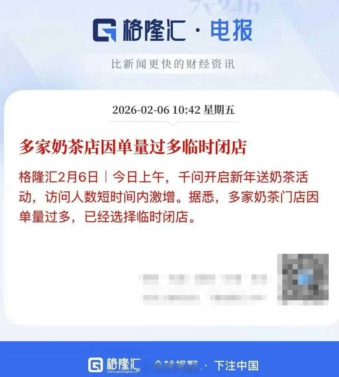 听说今早千问几个小时就干出去200万杯奶茶了,千问点奶茶直接宕机千问崩了 ,多家奶茶店因单量过多临时闭店!