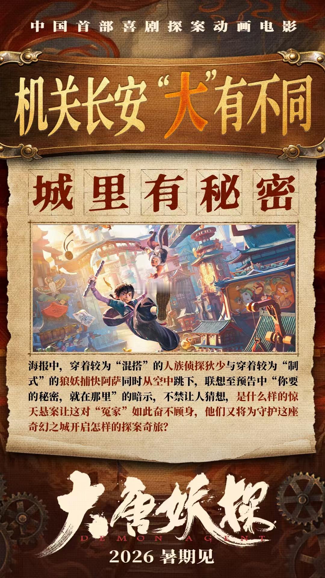 姜子牙导演新片定档暑期 《大唐妖探》官宣来袭,喜剧+探案+奇幻三重惊喜,反差探案搭档全程有梗又有料。原来你是这样的机关大唐 匠心打造奇趣盛唐,坐等上映赴这场欢乐探案之约~