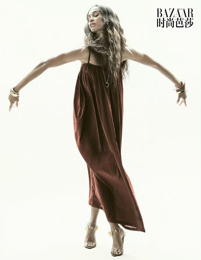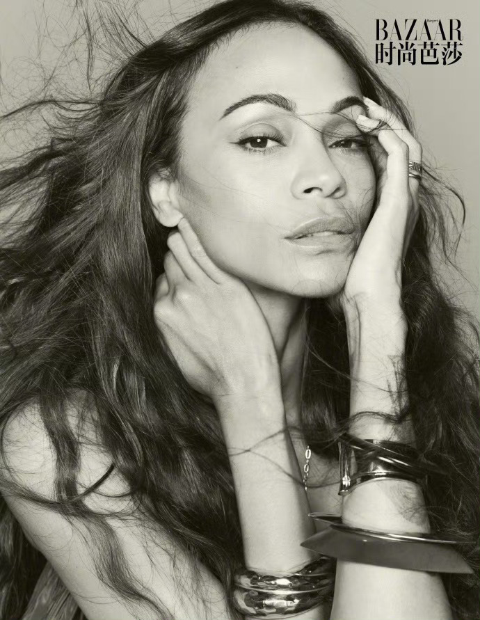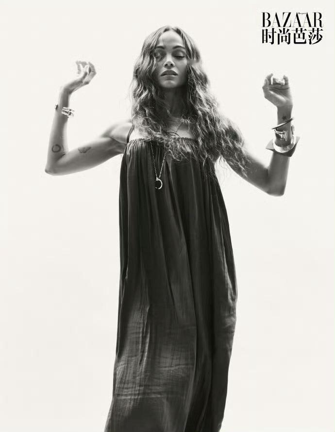 时尚芭莎封面演员Zoe Saldana Saint Laurent