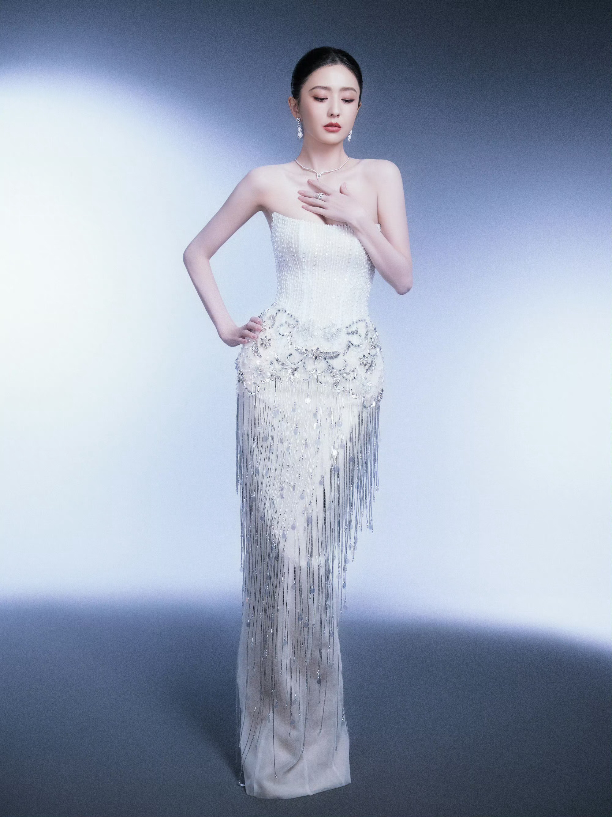 张天爱 暗色礼裙缀以星辰,于光影间诠释柔美与力量。