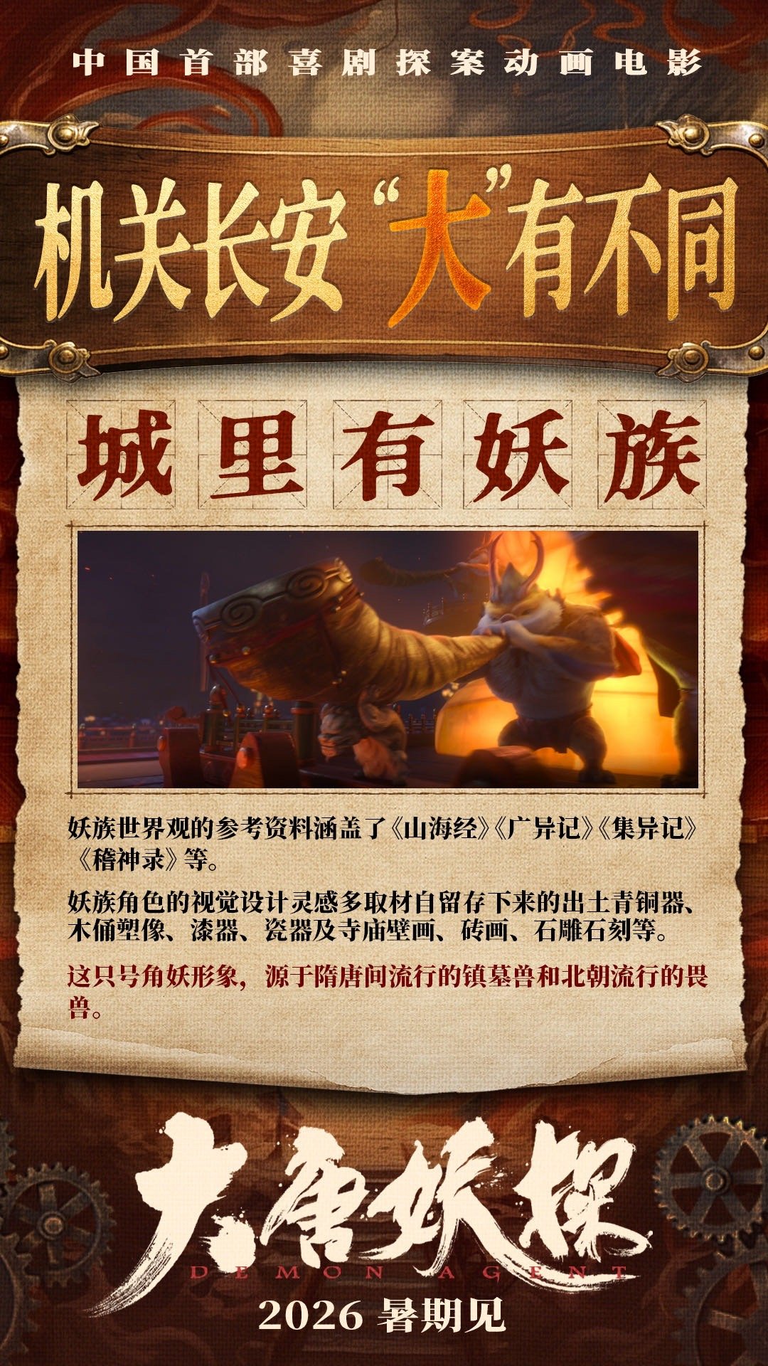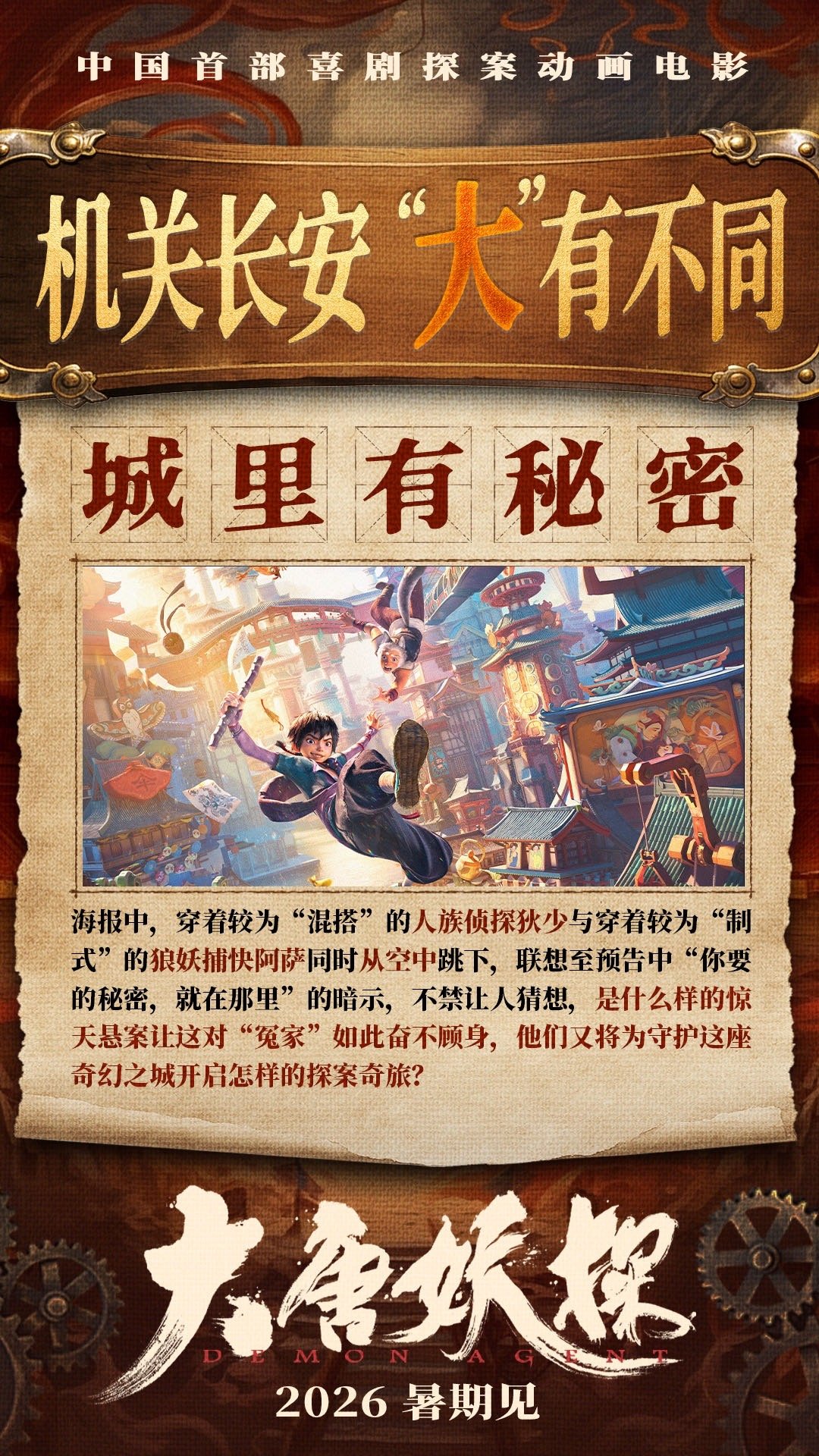 姜子牙导演新片定档暑期程腾导演六年磨一剑,打造出机关驱动的奇幻长安,不靠谱搭档探案既搞笑又烧脑,神秘建筑的秘密吊足胃口,2026暑期不见不散!原来你是这样的机关大唐