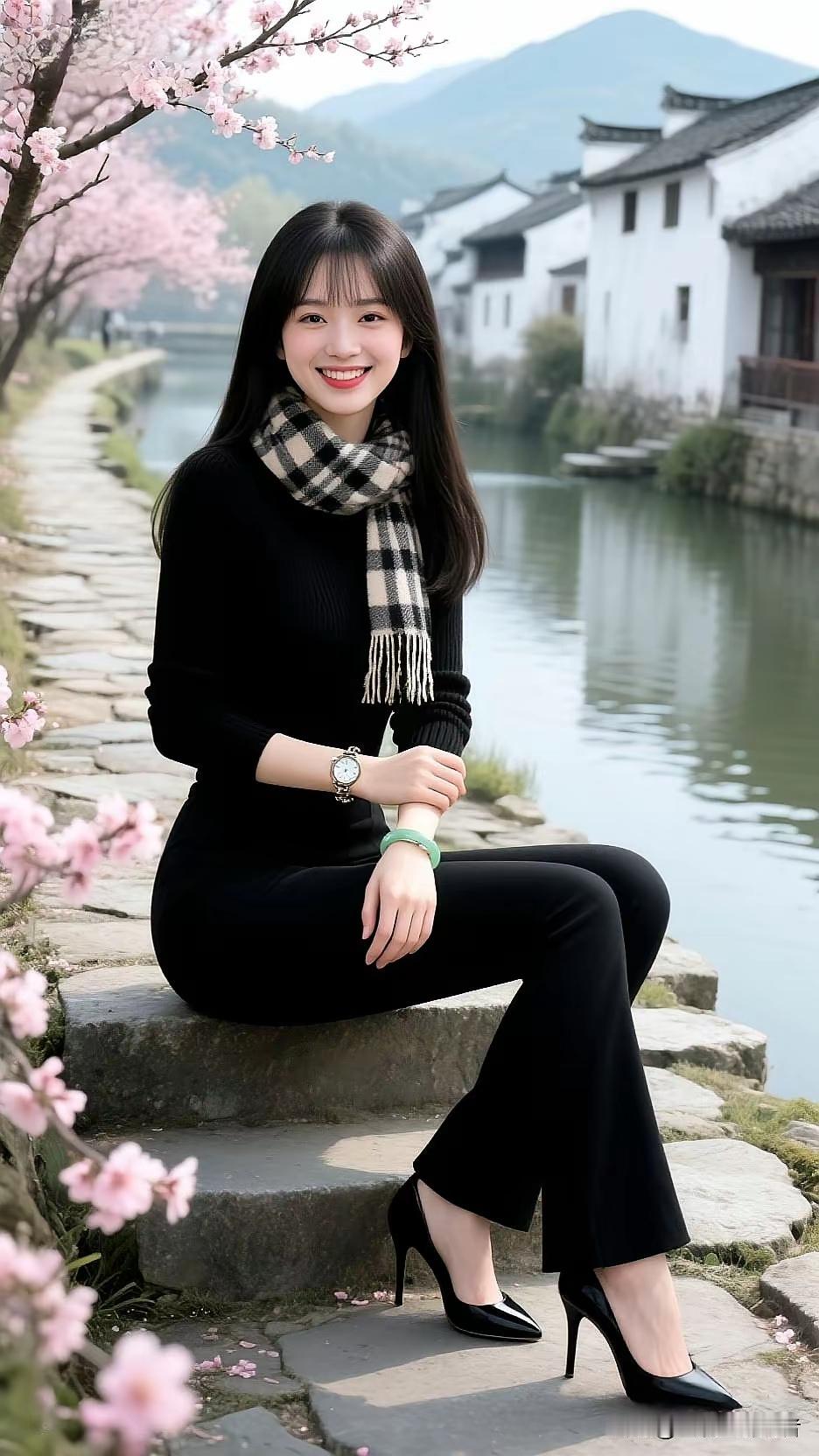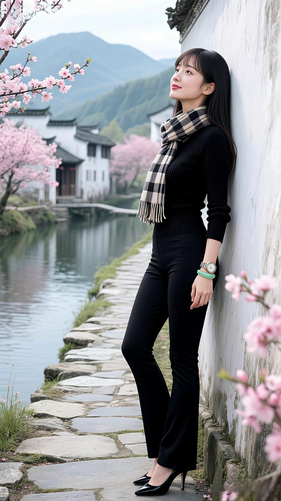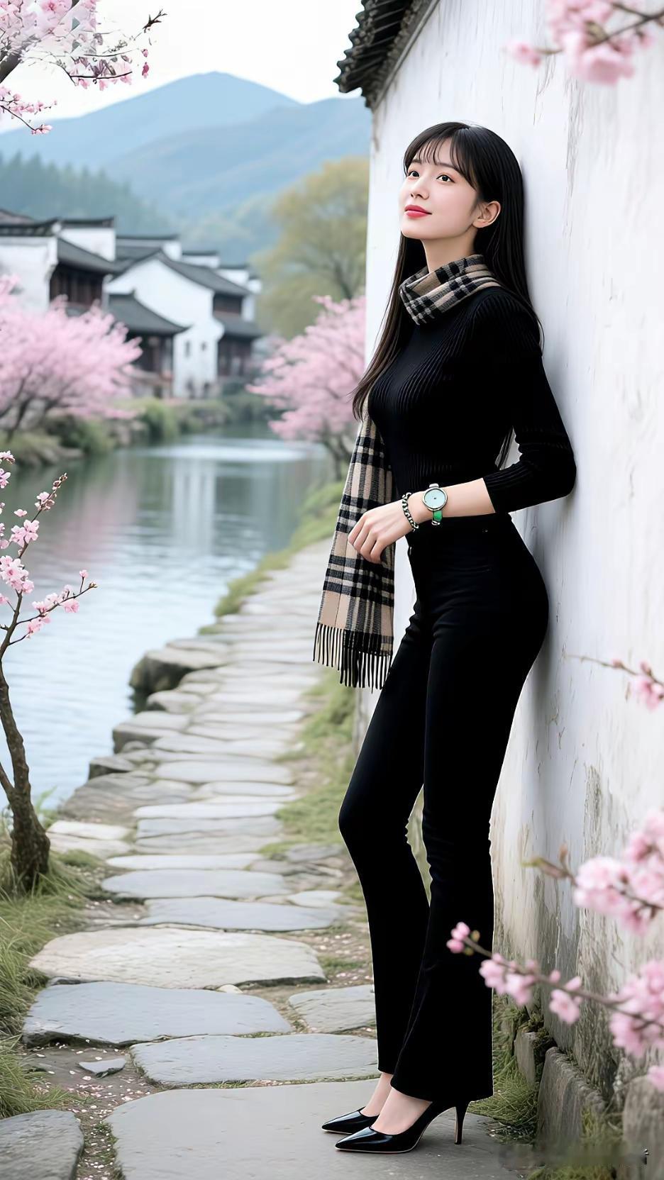 水墨江南,佳人倚栏。