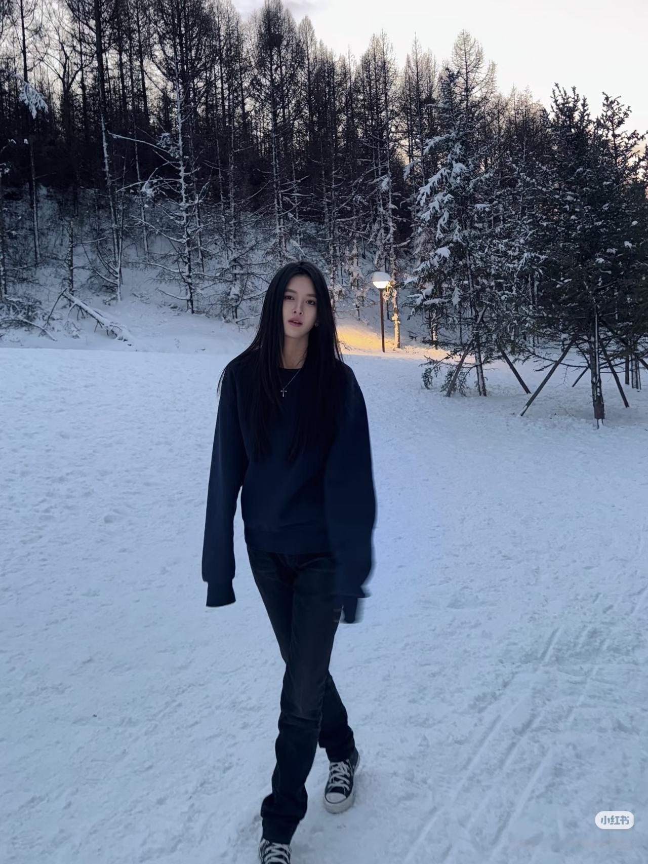 雪中漫步,笑语盈盈。