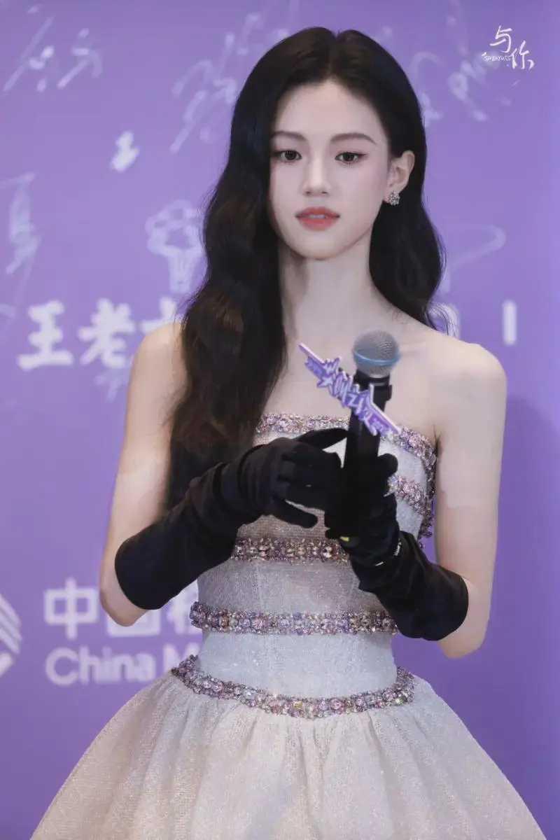 孙允珠,淡蓝色吊带长裙完美展现了她的优雅气质和身材优势。