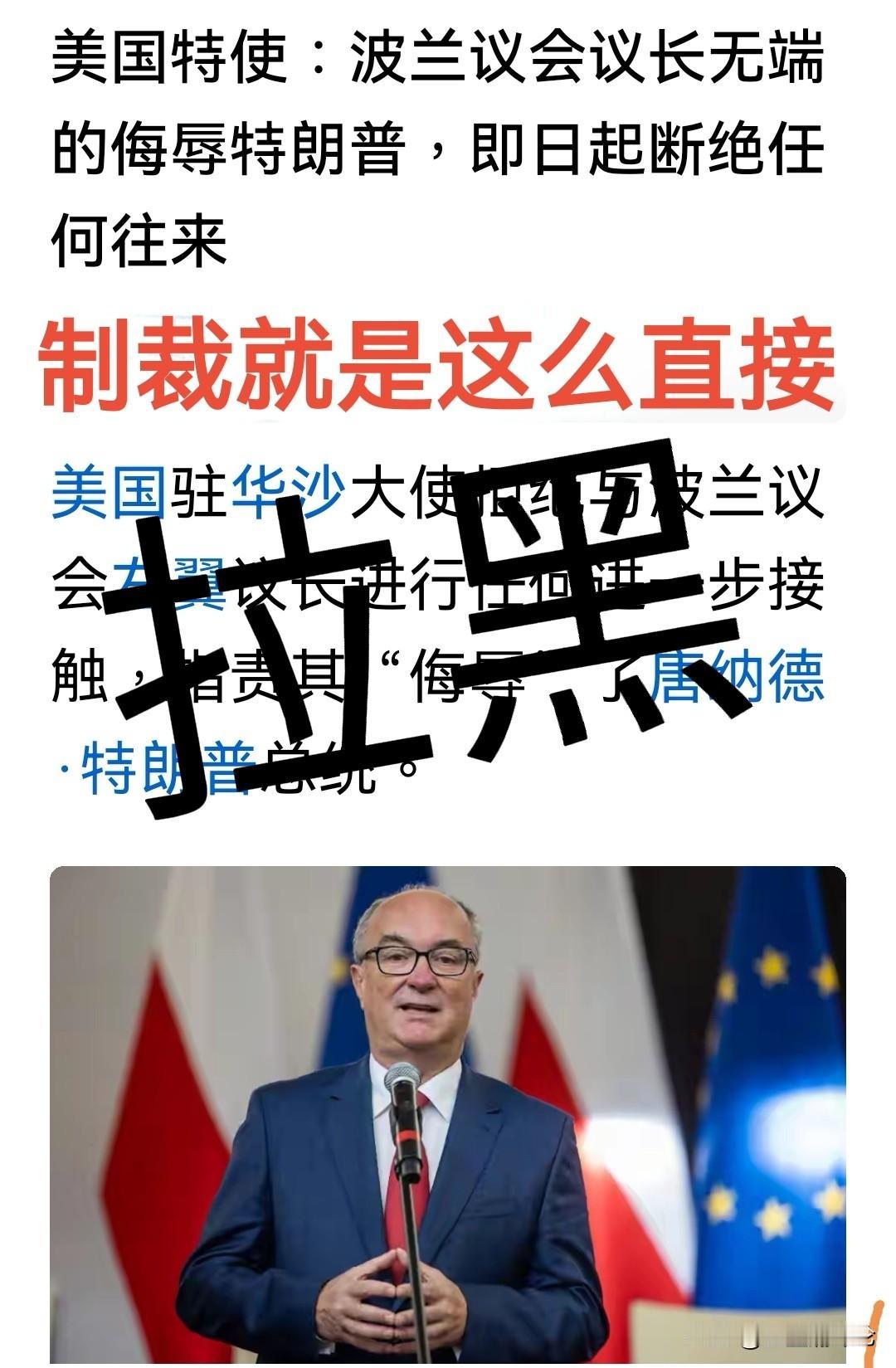 波兰议会议长被美大使拉黑…… 就因为波兰🇵🇱议会议长说了一句“我不会支持特朗普获得诺贝尔和平奖,因为他不配”。从这件事看美国,总觉得美国不是太霸道就是太脆弱了。 特朗普羞辱别的国家或者领导人信手拈来,嘲笑马克龙戴眼镜、无视高市早苗和日本国旗、说德国太坏、羞辱加拿大就是美国一个州,等等等等,这些国家没有一个制裁美国,更不敢针对特朗普个人。特别是美国的盟友国家,就是被特朗普和美国羞辱,也不敢有半句反击。