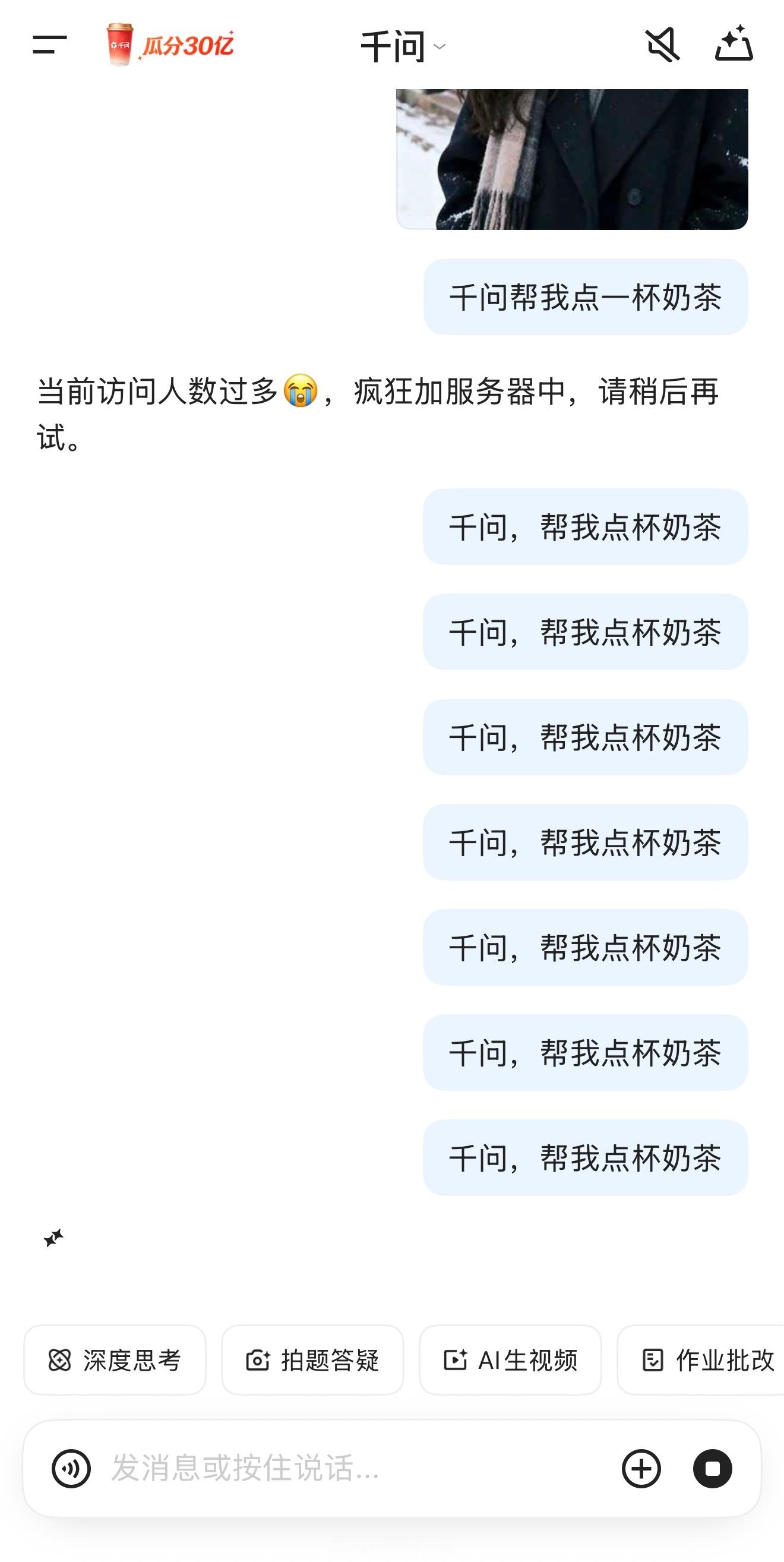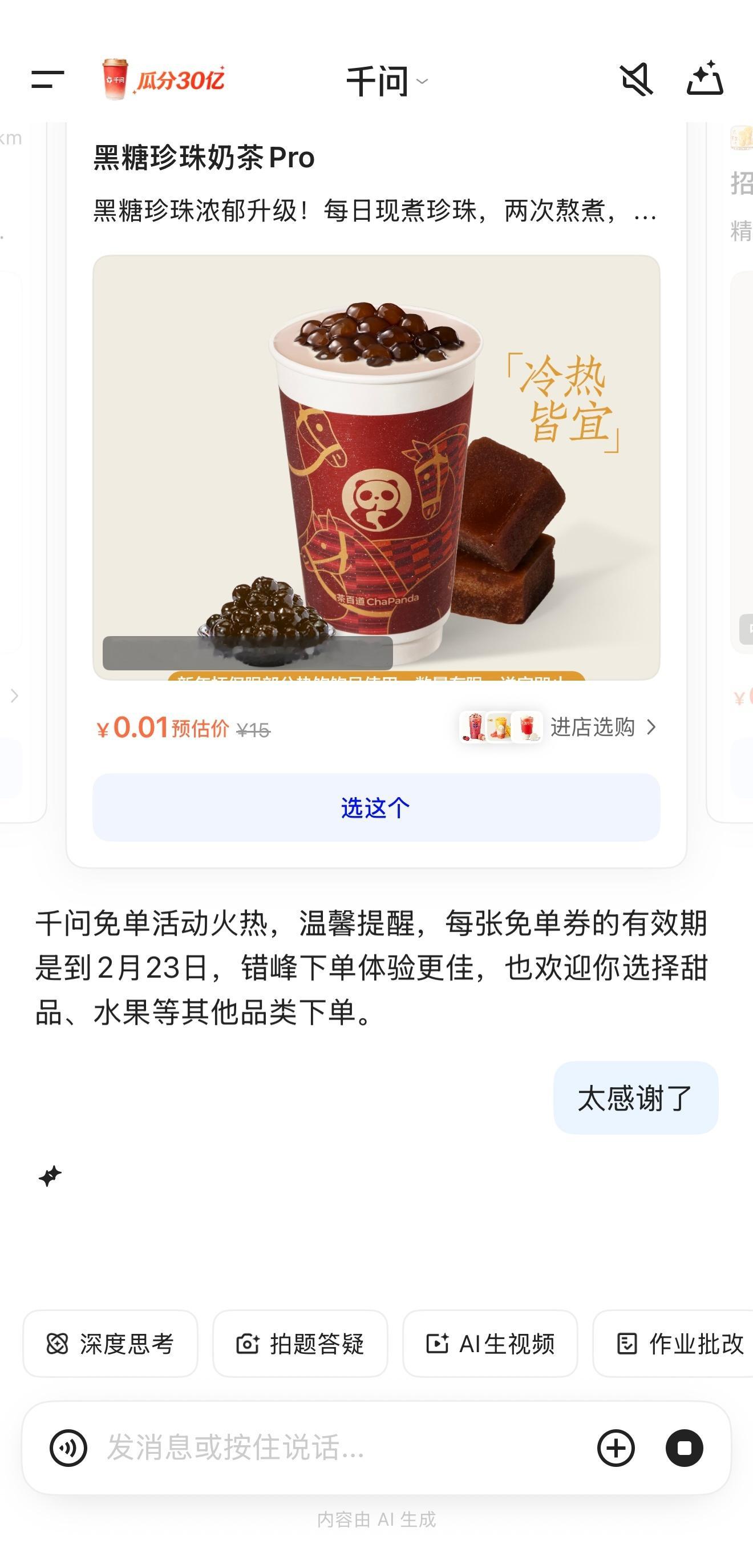 千问回应免费奶茶活动我这算不算薅到了羊毛?不过最后让我去凑单,抢不到的可以多出发几次会话,授权之后就能领到了,你们都尝试过了吗?