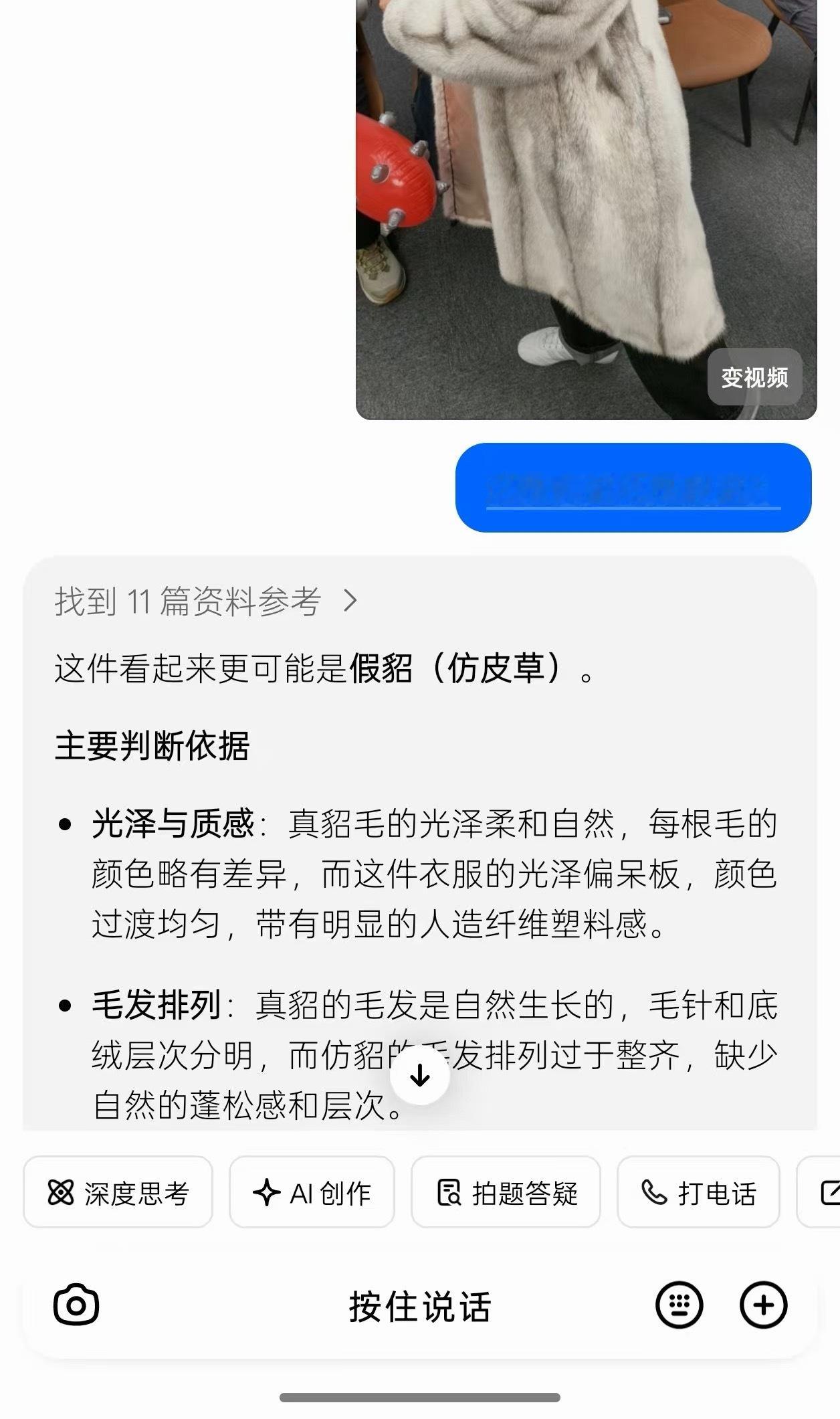 今天在公司摸鱼拍一天综艺节目我这貂皮大衣看着很不错呀为啥豆包觉得这是假貂 北京