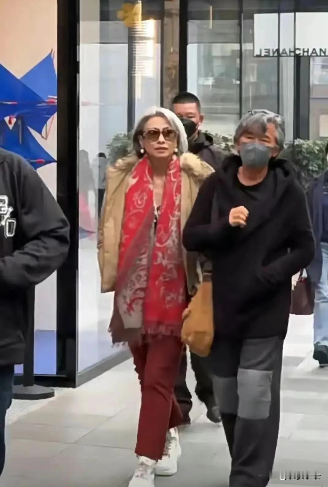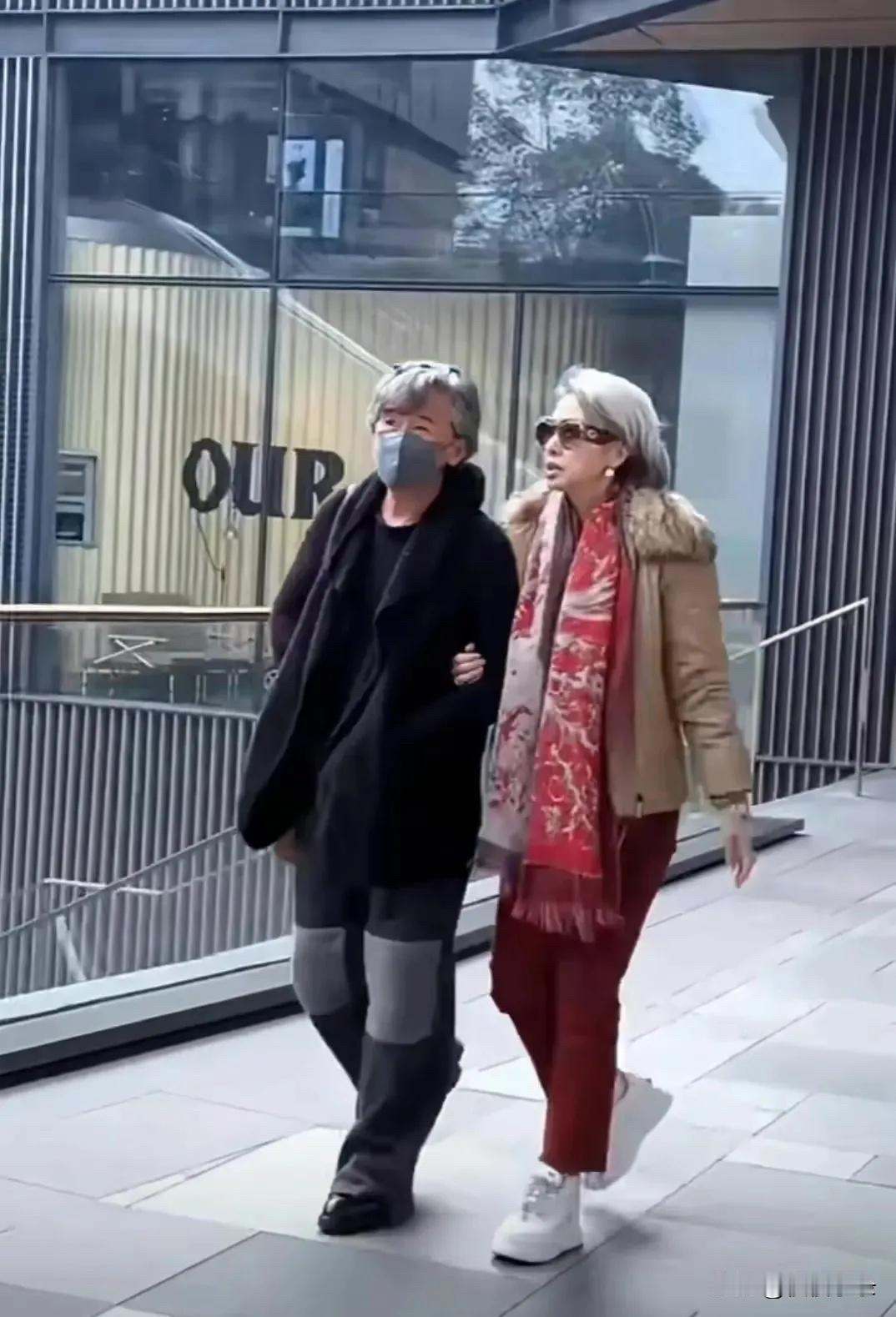 有网友拍到歌手林子祥和叶倩文夫妇逛太古里,照片中俩人挽着胳膊看起来非常恩爱!照片中的俩人穿搭也是非常抢镜,林子祥穿黑色连帽外套,看起来还挺时尚,就是下面的裤子真是太个性了,宽松款的裤子搭配黑色皮鞋,就是膝盖上的两个补丁太扎眼,难道这就是传说中的乞丐服!叶倩文年轻的时候是又漂亮又时尚的女歌手,嫁给林子祥后,为了和老公同步,也硬是把自己打扮成老太太的模样,留着白色头发,戴着红色围巾,穿红色裤子搭配白色鞋子,打扮得低调随意![赞][赞]