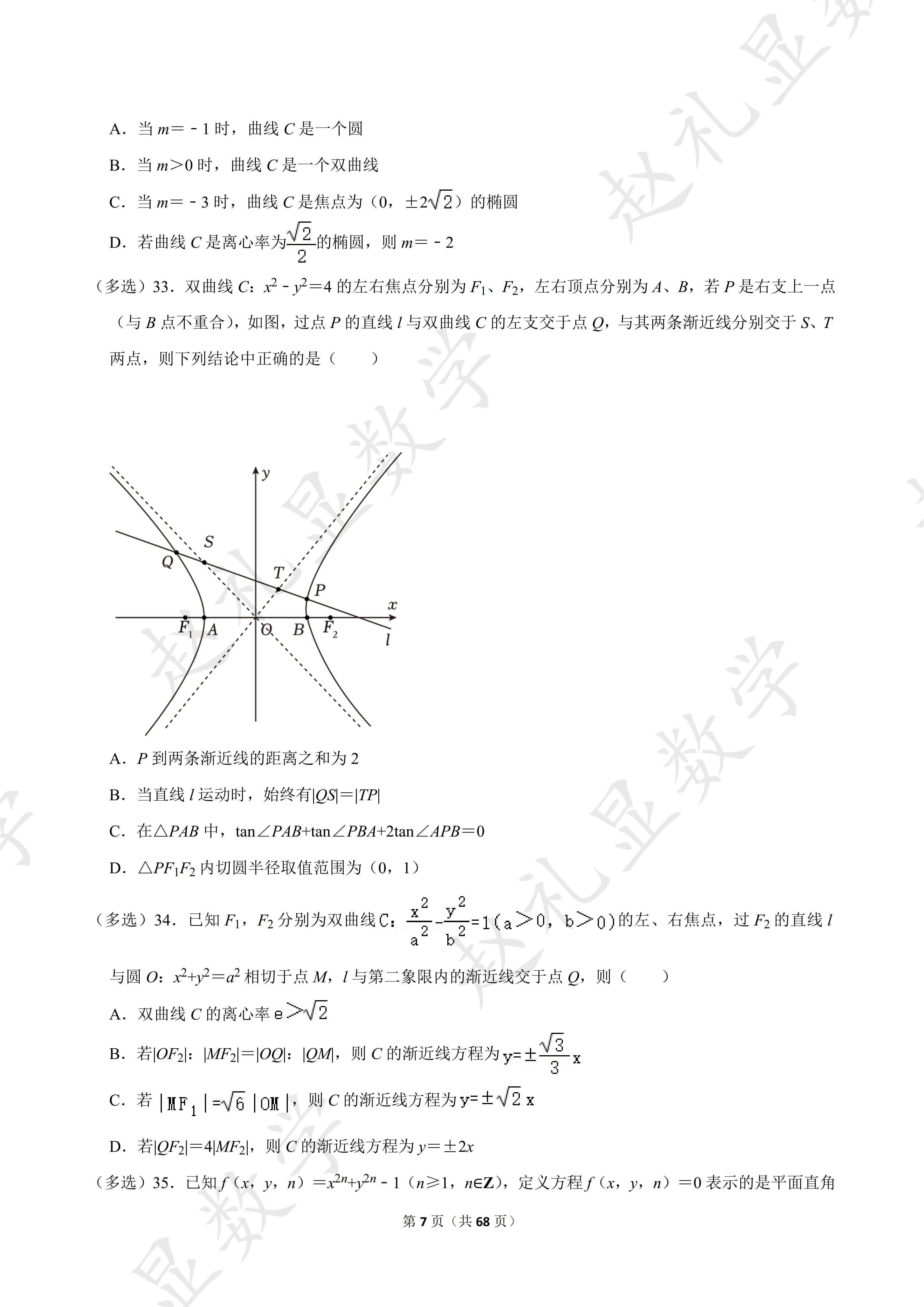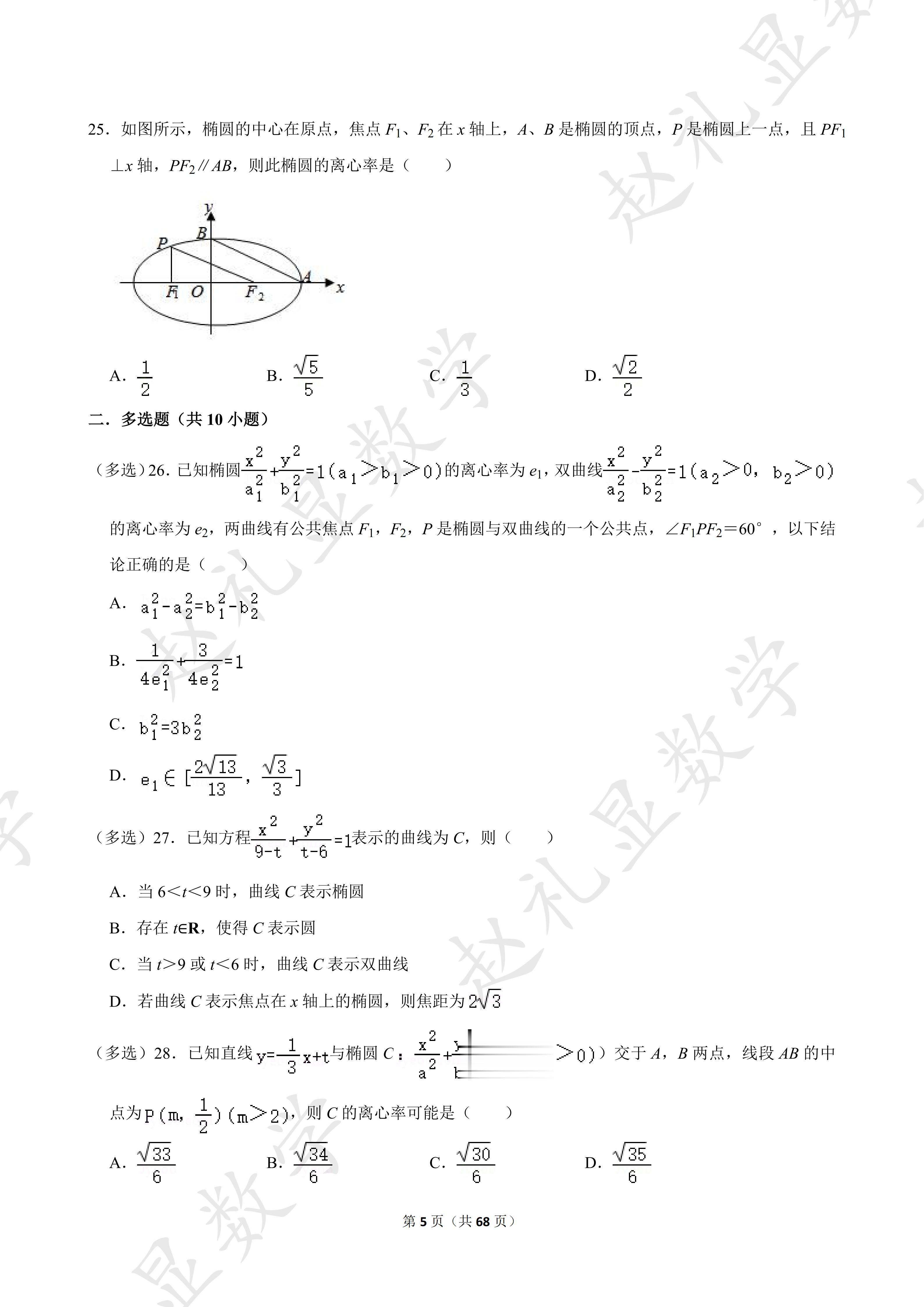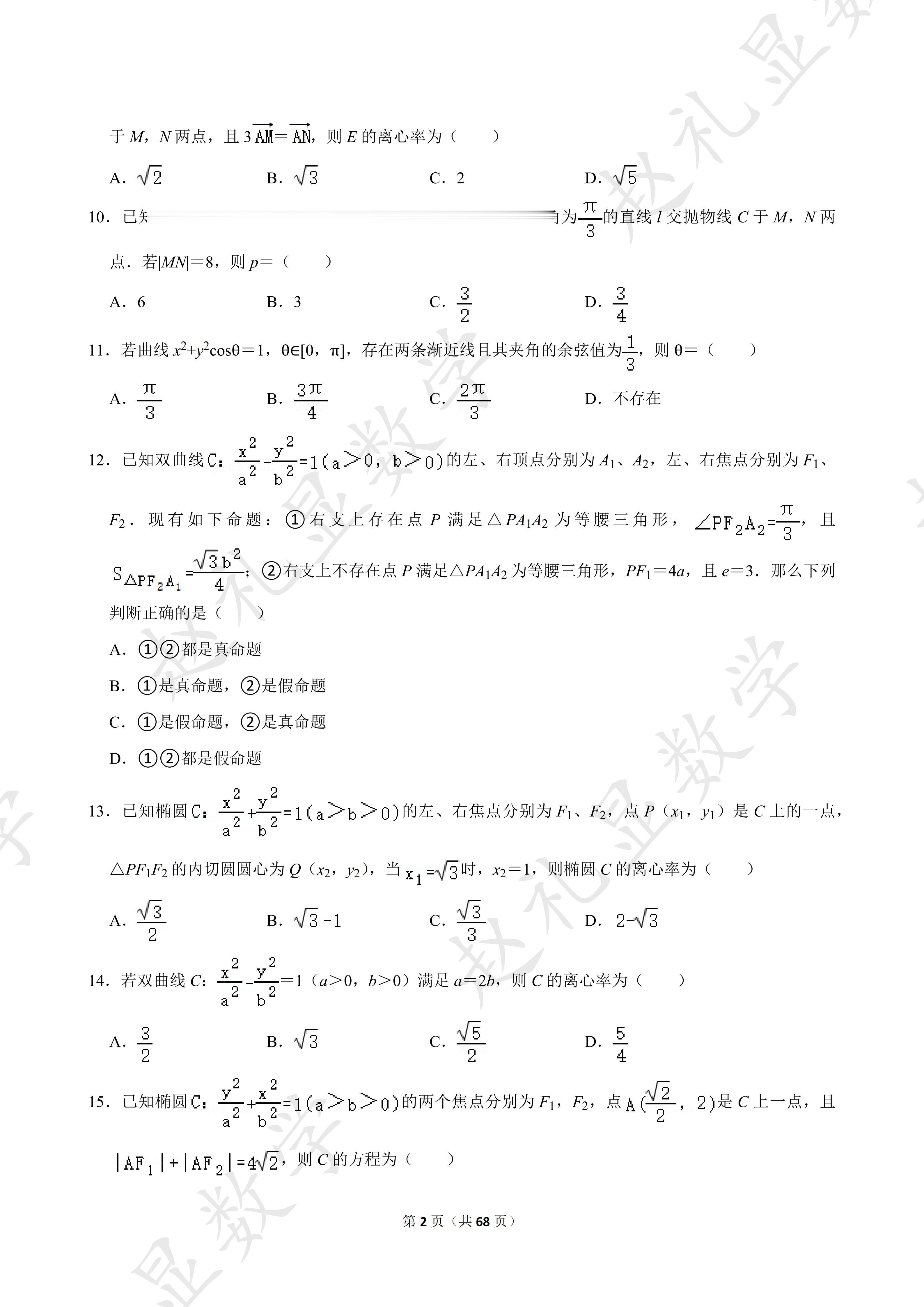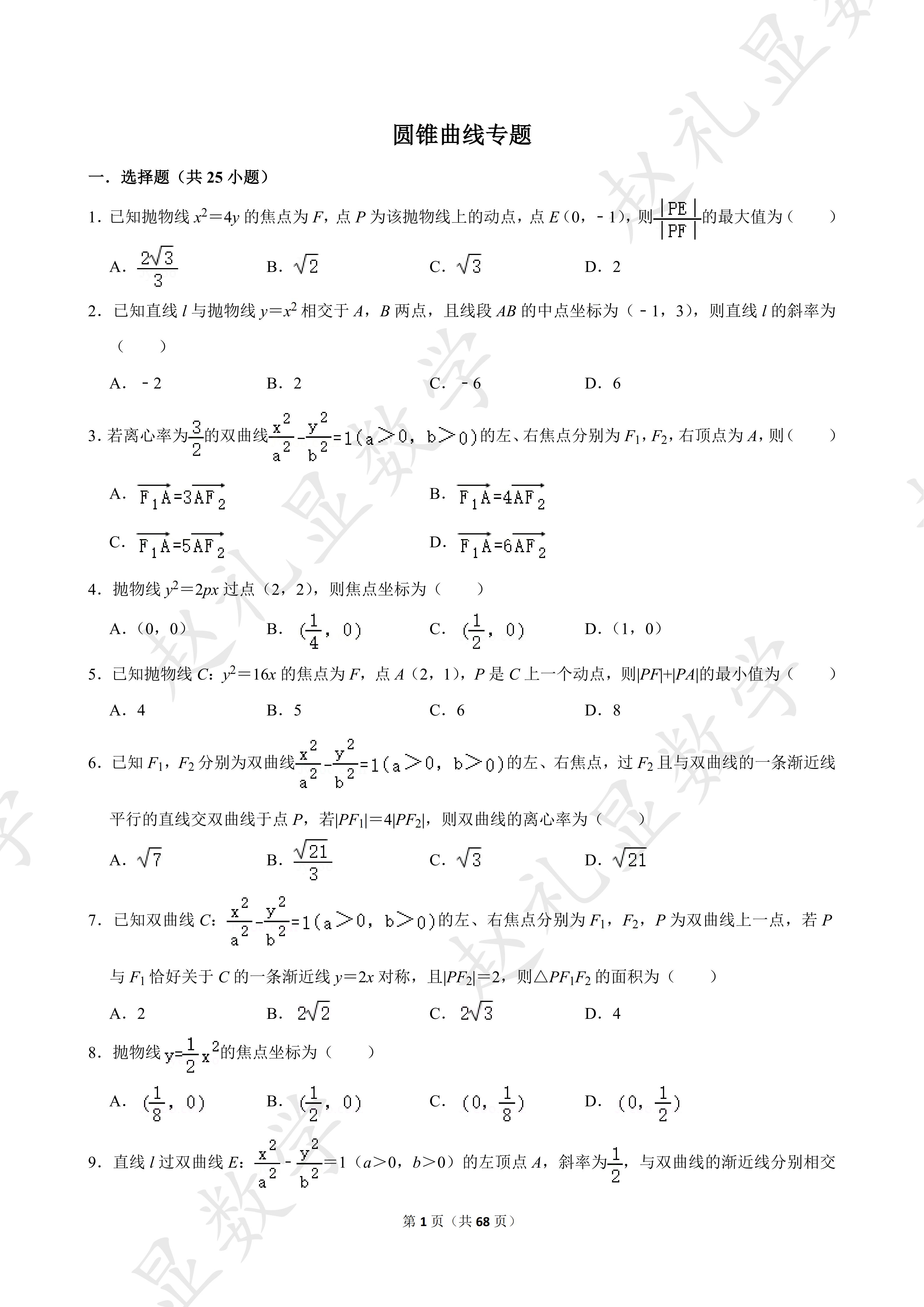 寒假就做完这60题,不信圆锥曲线还学不好。【68页】圆锥曲线专题专练,可下载可打印无水印版~