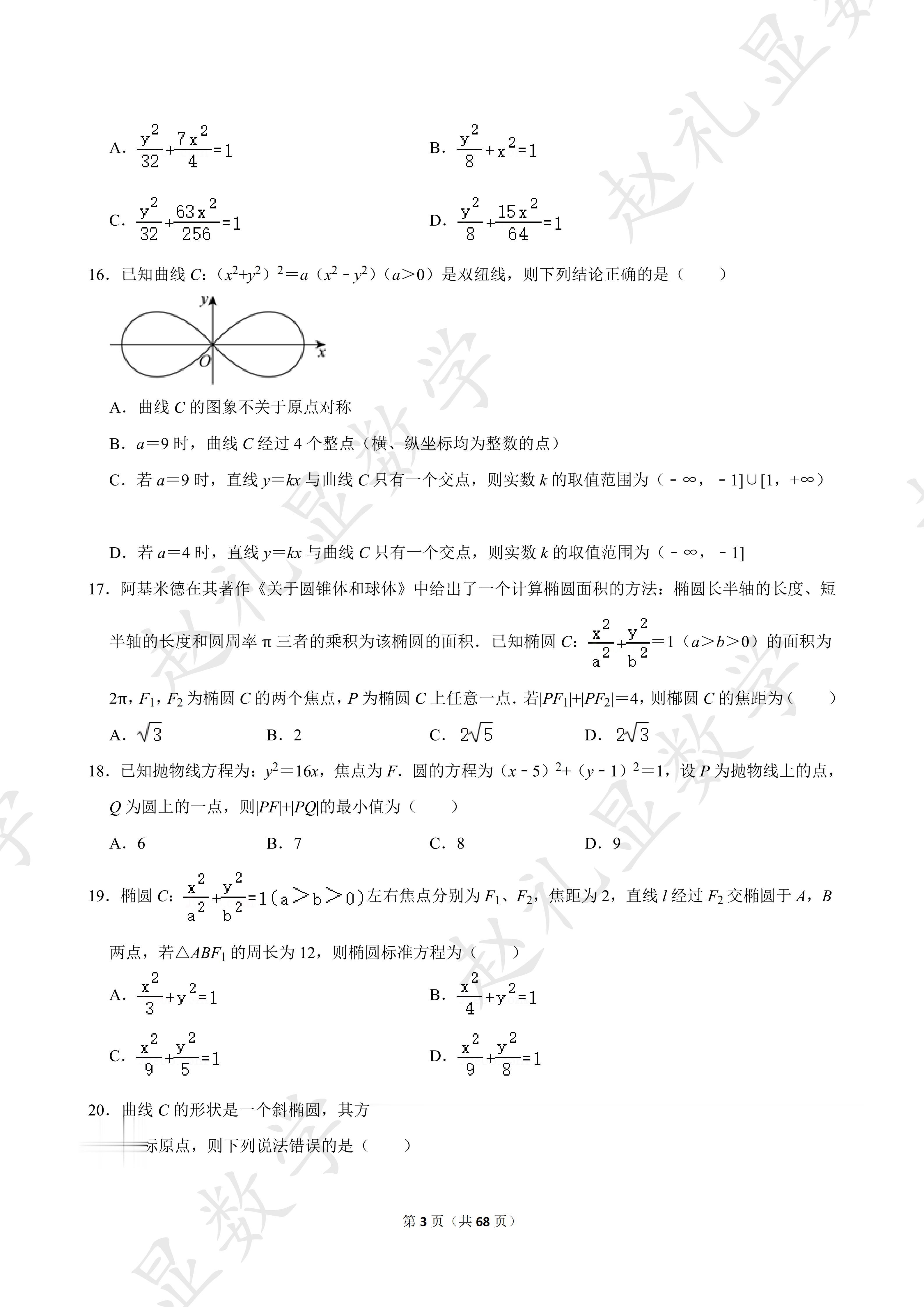 寒假就做完这60题,不信圆锥曲线还学不好。【68页】圆锥曲线专题专练...