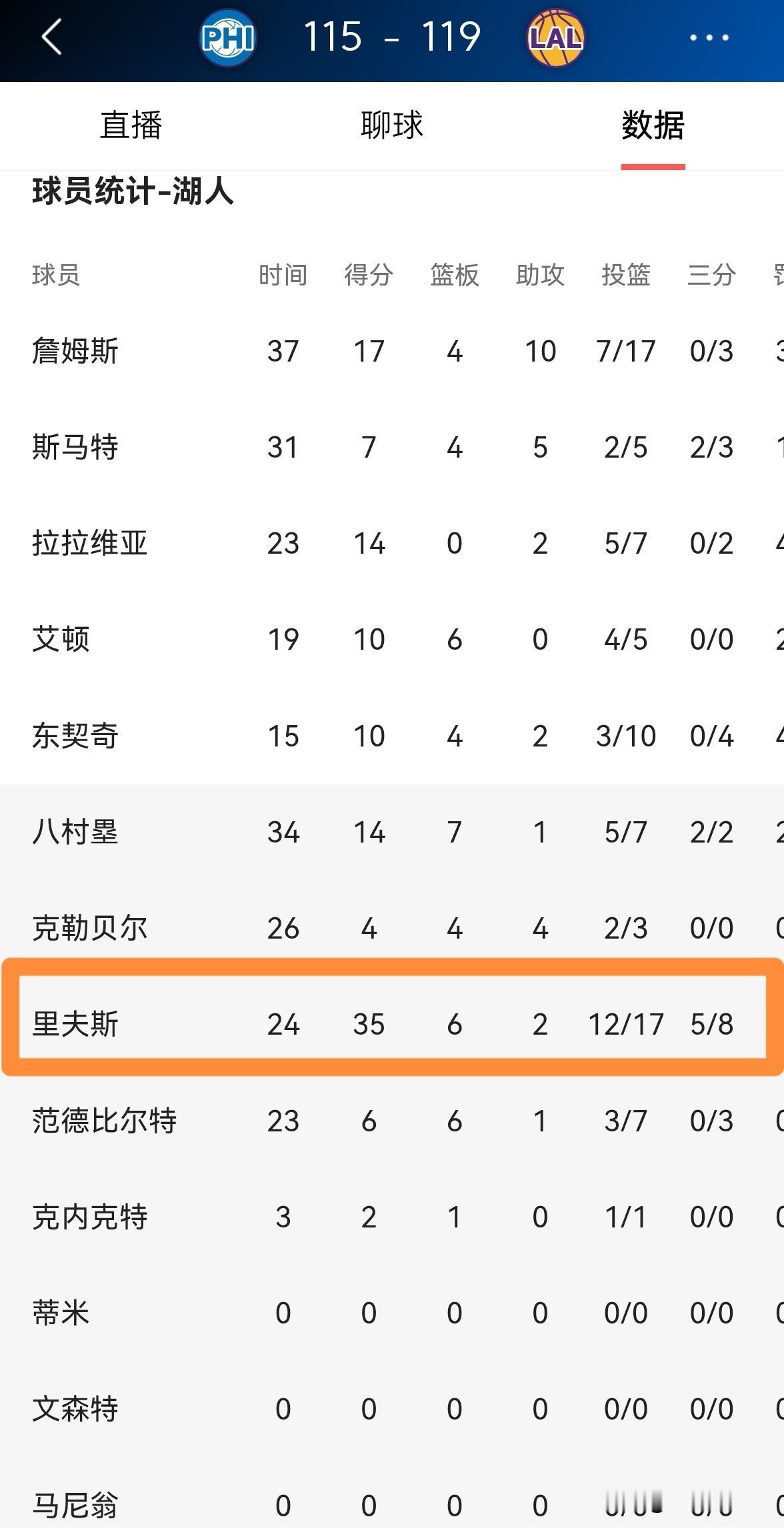 湖人主帅雷迪克真是太会夸人了!在今天湖人主场以119:115击败76人的赛后采访中,雷迪克教练高度称赞了里弗斯的表现。 雷迪克教练这样说道:“里弗斯今晚的表现真是太逆天了,他今晚命中了三分球还打进了几个神仙球,不过最亮眼的当属他的突破和冲击力。看到他打出这样的表现,真是太美妙了。” 实事求是的说,以里弗斯在本场比赛中的无解表现来看,他绝对配得上雷迪克教练的遭遇,今天的里弗斯令詹姆斯、恩比德和马克西三大球星黯然失色。